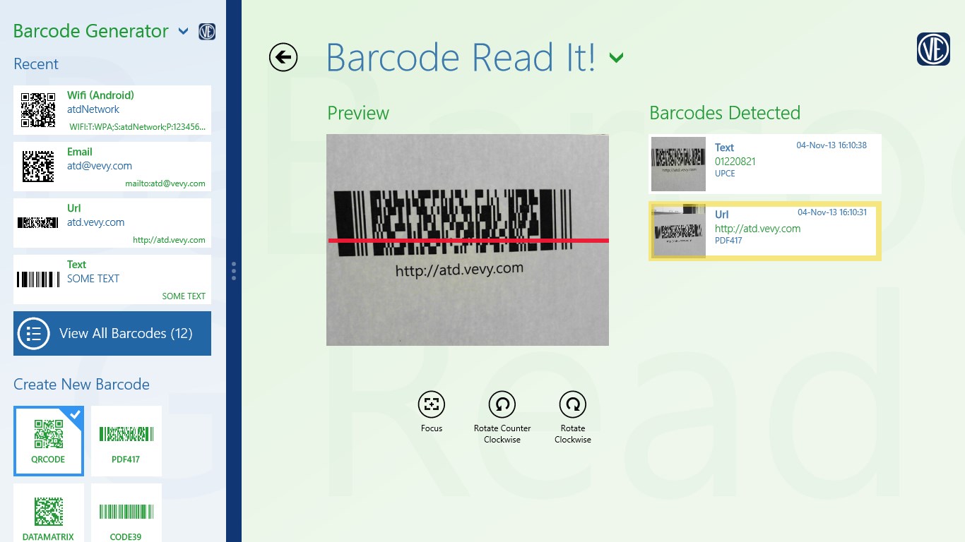 This application let you generate 2D barcodes with different formats that can be friendly used by smartphones and tablets.