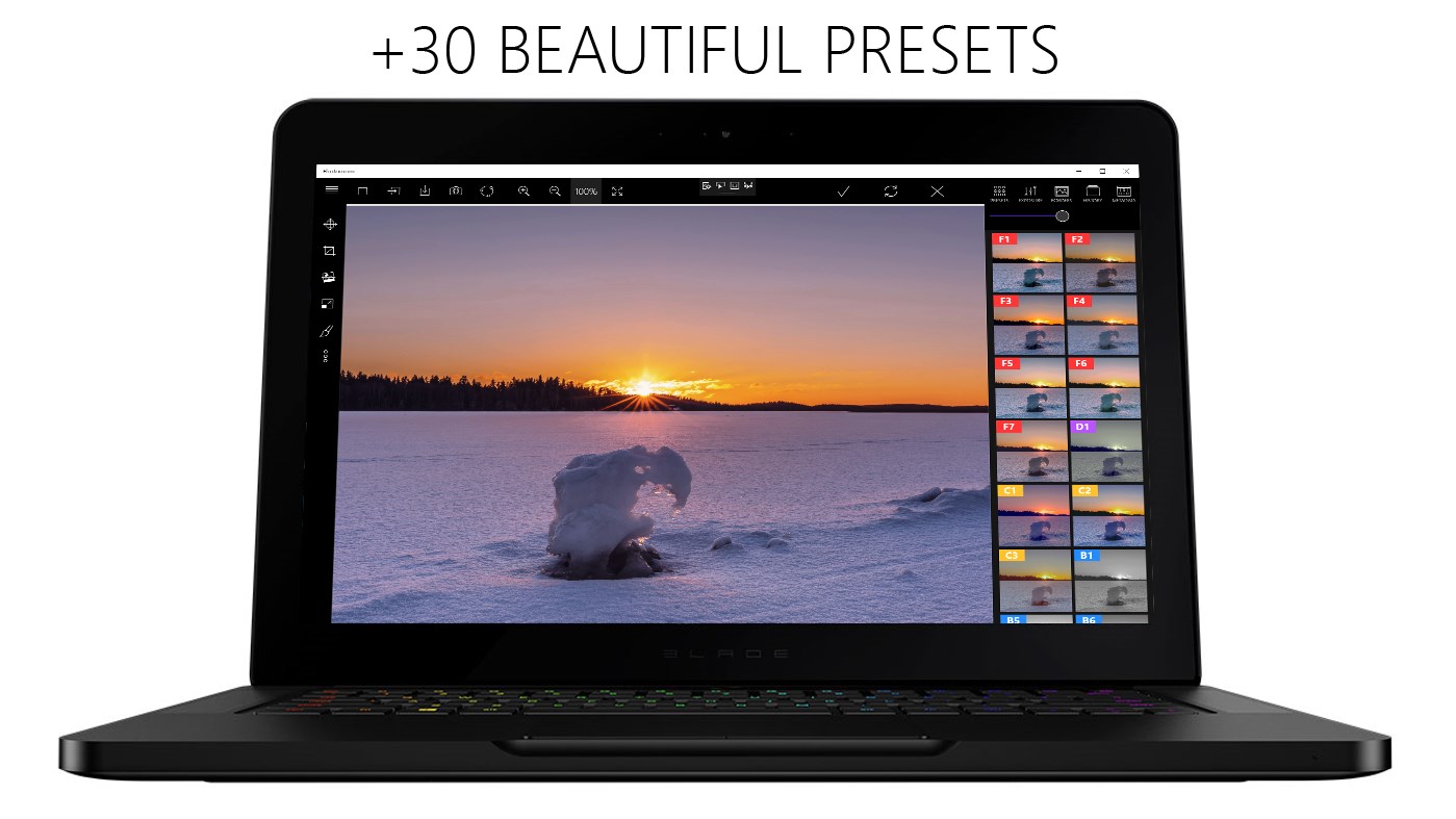 +90 Photo Editing ToolsShare your photos to Facebook, VK, Flickr and more TwitterTiny PlanetsLens CorrectionHDR