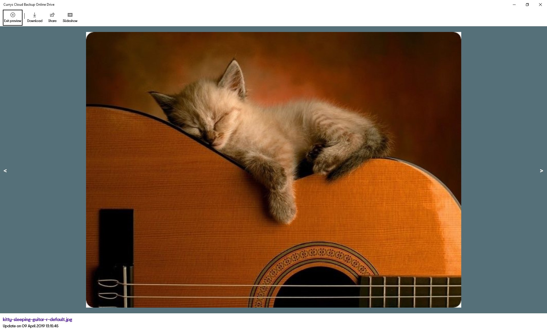 One half of a Cloud Backup double act. With this app you can view all your files uploaded to your Cloud Backup account. So whether you want to listen to your music, view a slideshow of your photos or stream your home movies, this is the app for you. Make sure your machine is automatically backing up your important files with the Currys Cloud Backup app, available from the Windows Store (https://www.microsoft.com/store/apps/9MVDXG0ZBMP7).