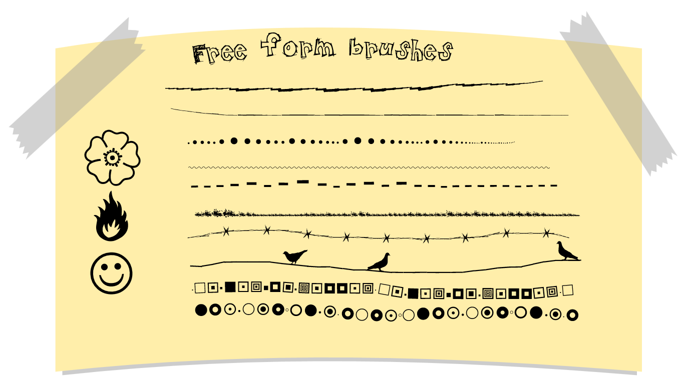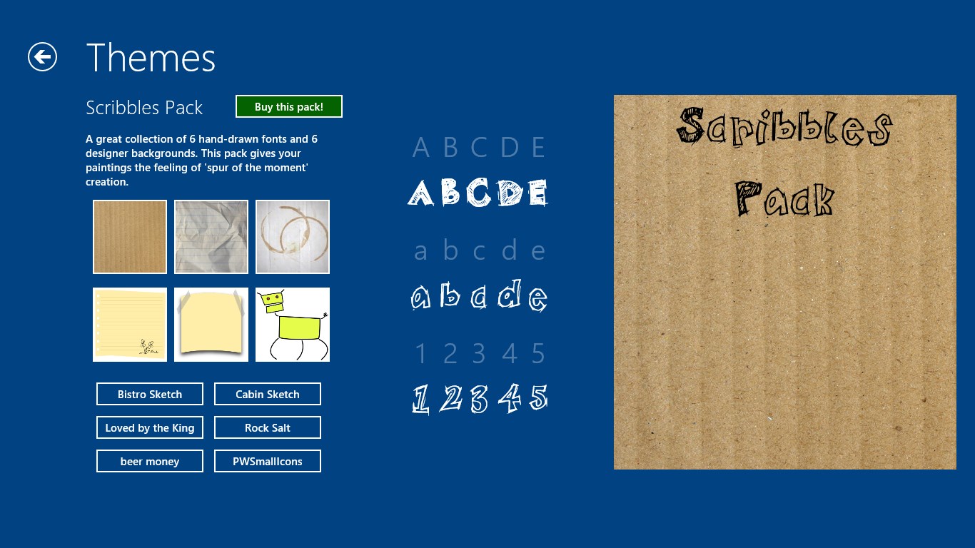 *The size of your brush stroke changes with how fast you draw, and is fully customizable.*40 of the most unique freeform drawing brushes you\'ve ever seen.*Support for over 200 of the most popular fonts, with the ability to add dozens more by purchasing theme packs.*Mix and match text effects like drop shadow outline and opacity*Image import system with automated placement and resizing.*And of course you can save your images and share your creations with others.