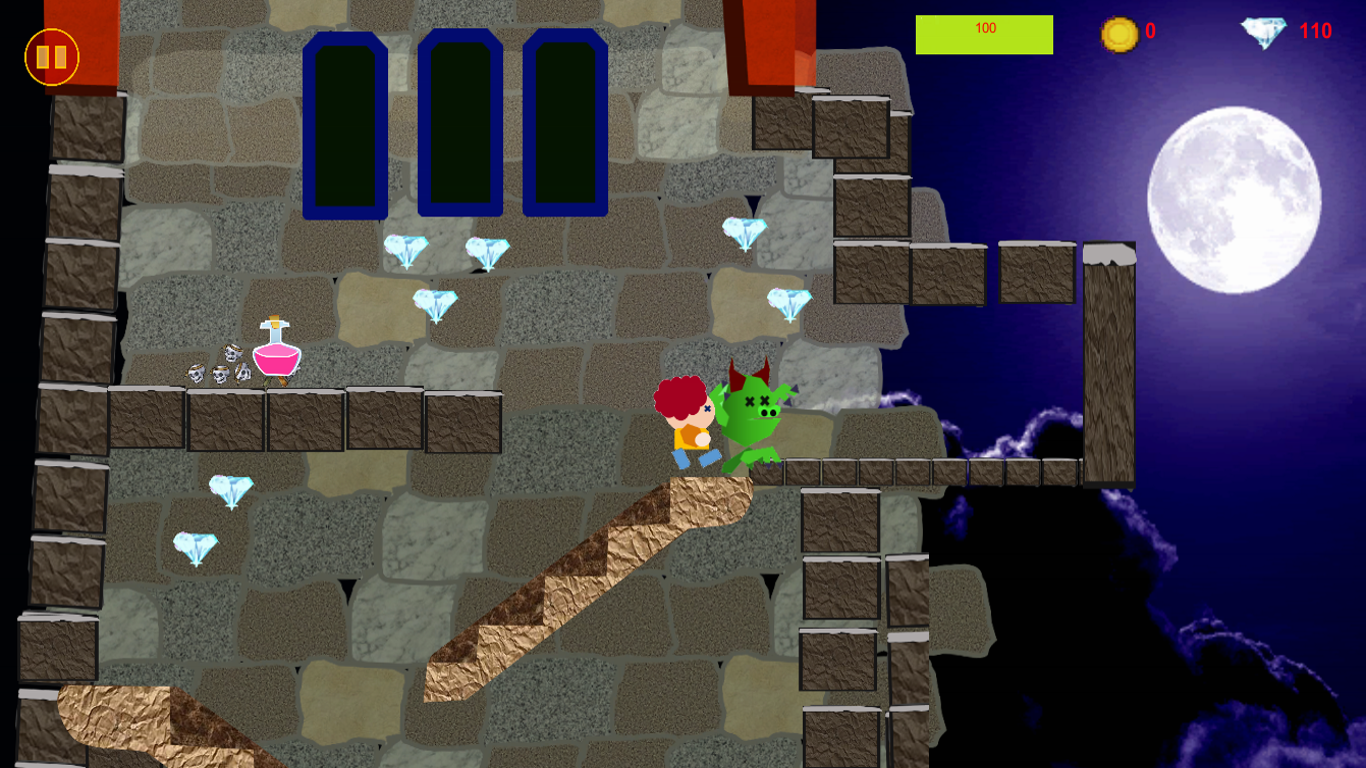 8 Niveles cada uno ambientado en un lugar distinto.Trucos escondidosPanel de Niveles con clasificación en estrellas, Oro,Plata Y bronce.Distintos enemigos distintos retos.Efectos de Sonido y Excelente Música de Fondo.Próximamente Nuevos Niveles y Actualizaciones.Ahora mismo puedes ser un héroe.Solo para uso con Teclado No es utilizable en esta versión con pantallas tactiles