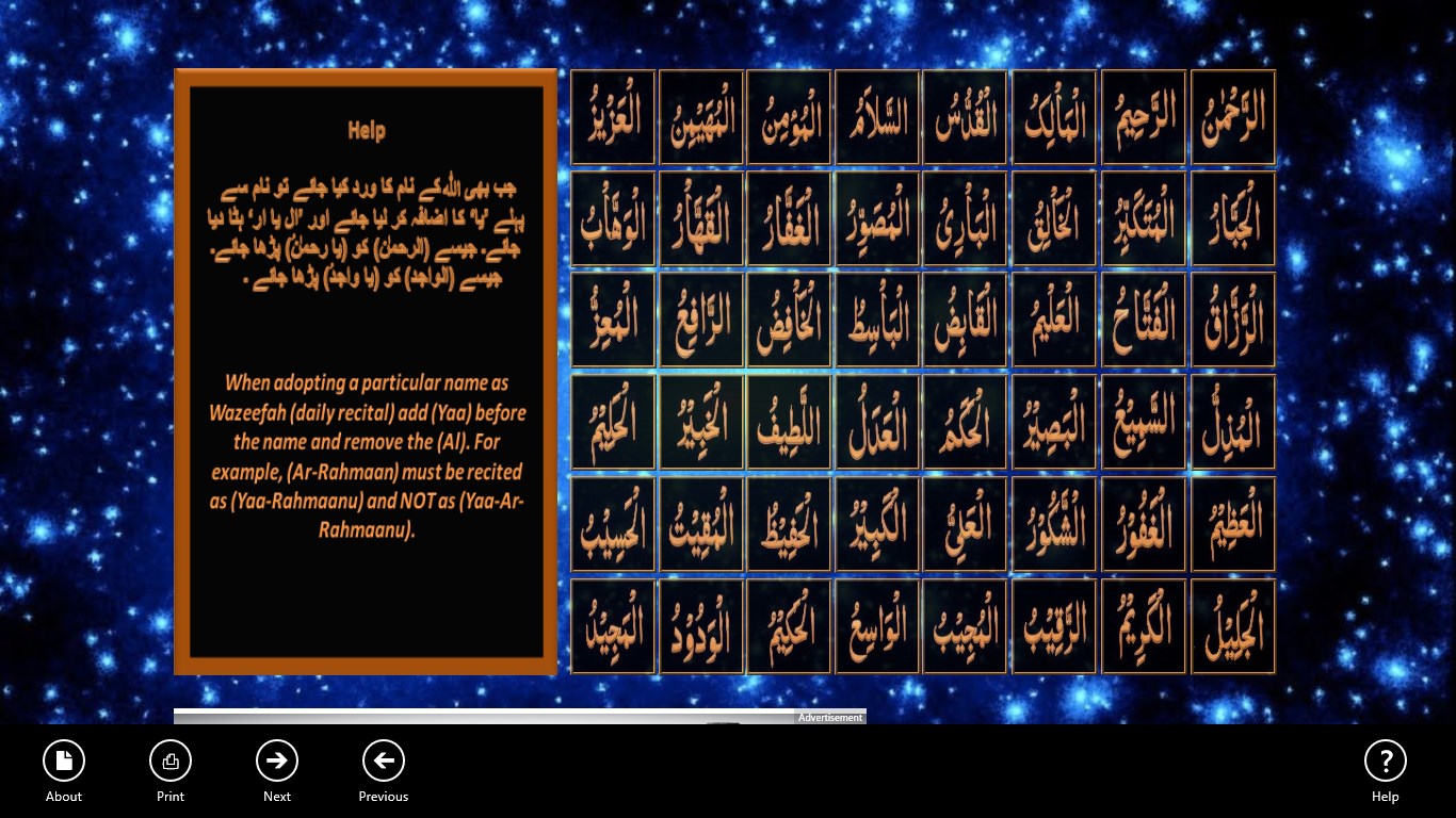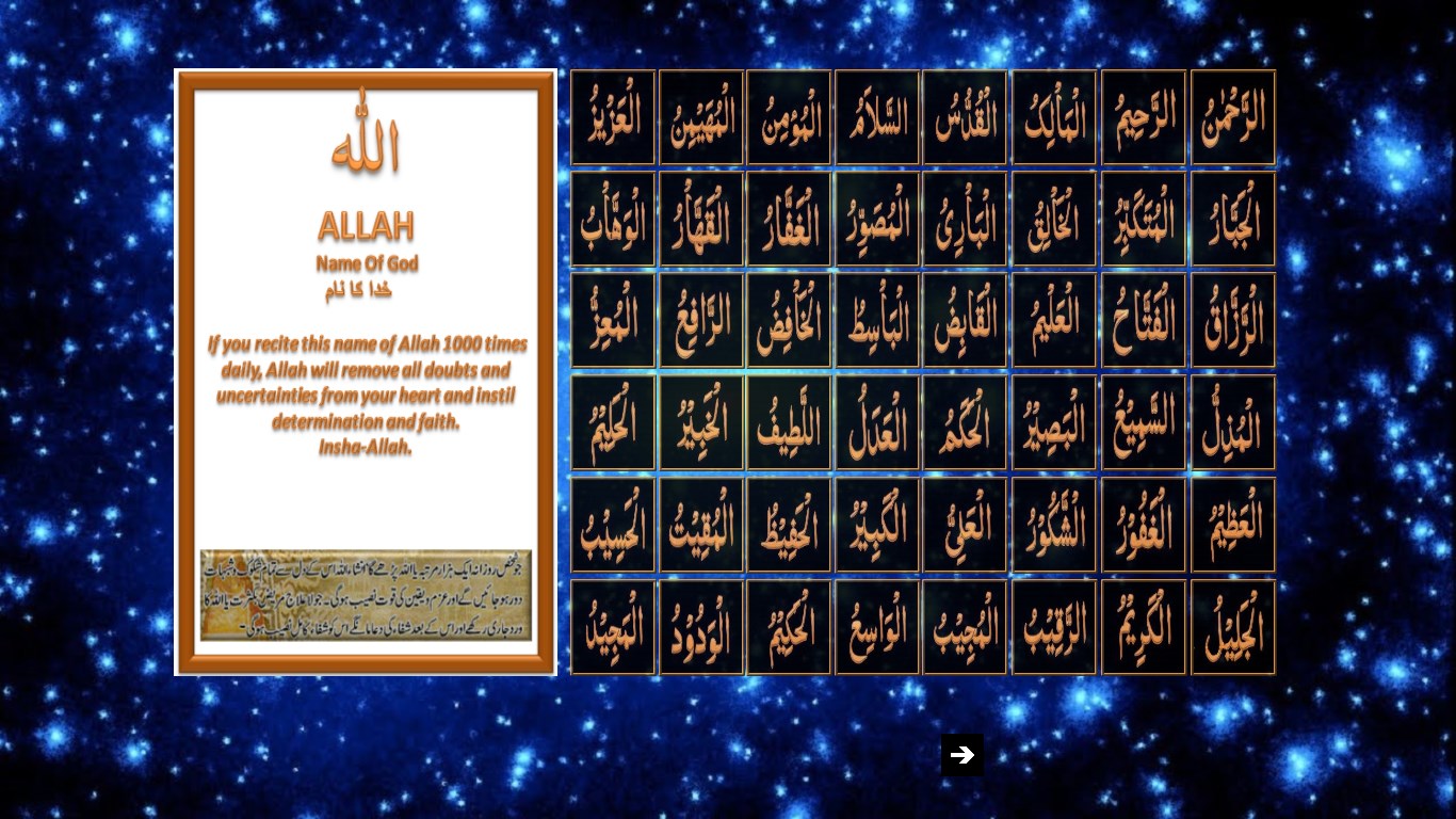 Beautiful Names of Allah - Allah is creator of every thing in this universe. Allah has different beautiful names We created this application to get the knowledge of these names and get benefits from reciting them in our daily lives.