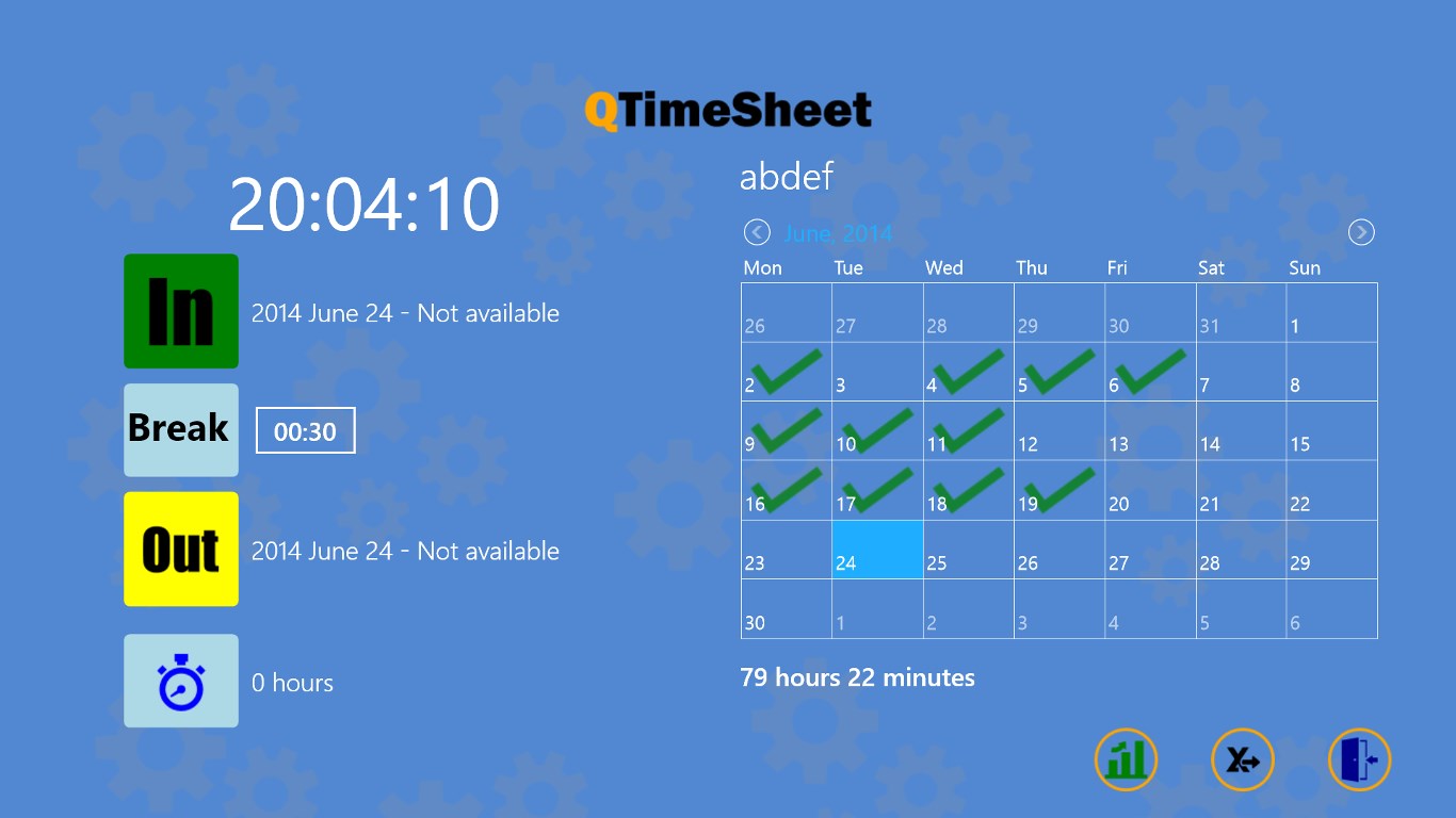QTimesheet is designed for small business who need a simple and yet functional timesheet system. it is quick to enter, extremely simple to setup and easy to maintain.