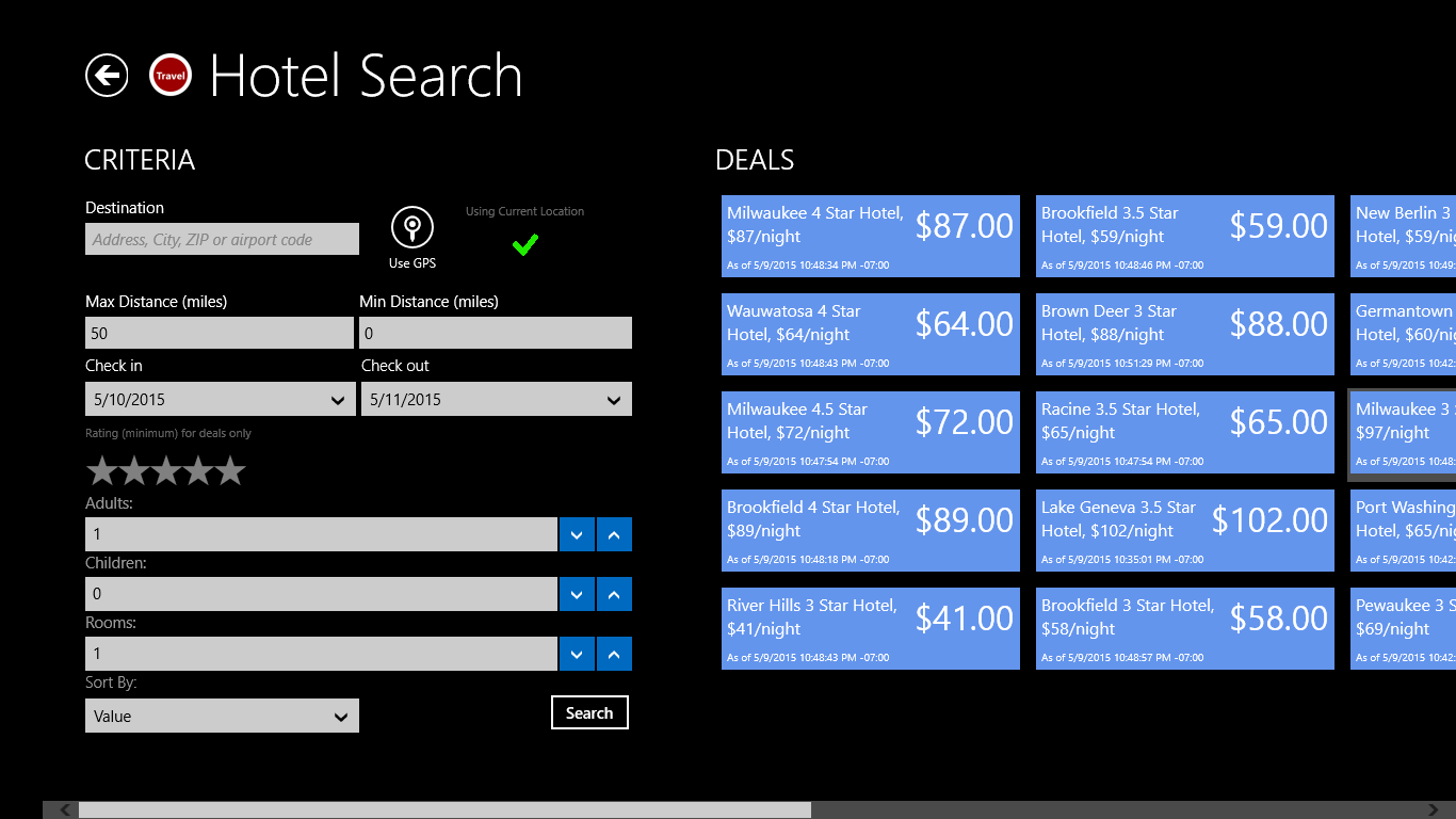 Looking for a great deal on hotels and car rentals? Just pick up your phone and let Travel Spot for Windows Phone help you find great deals on car rentals and hotels in your area or at your destination.