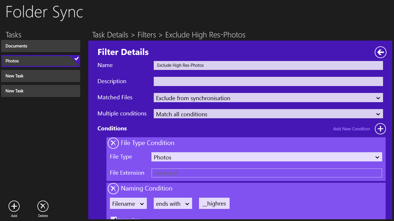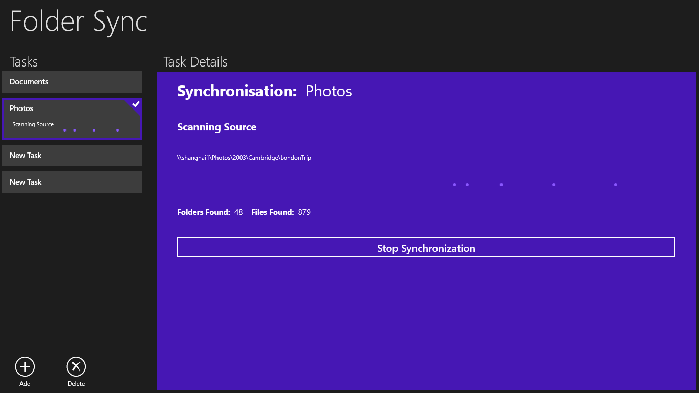 Folder Sync is a tool to simply synchronize the contents of two folders, on the same device or across network locations.