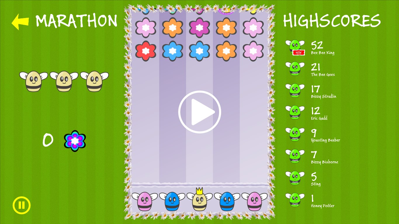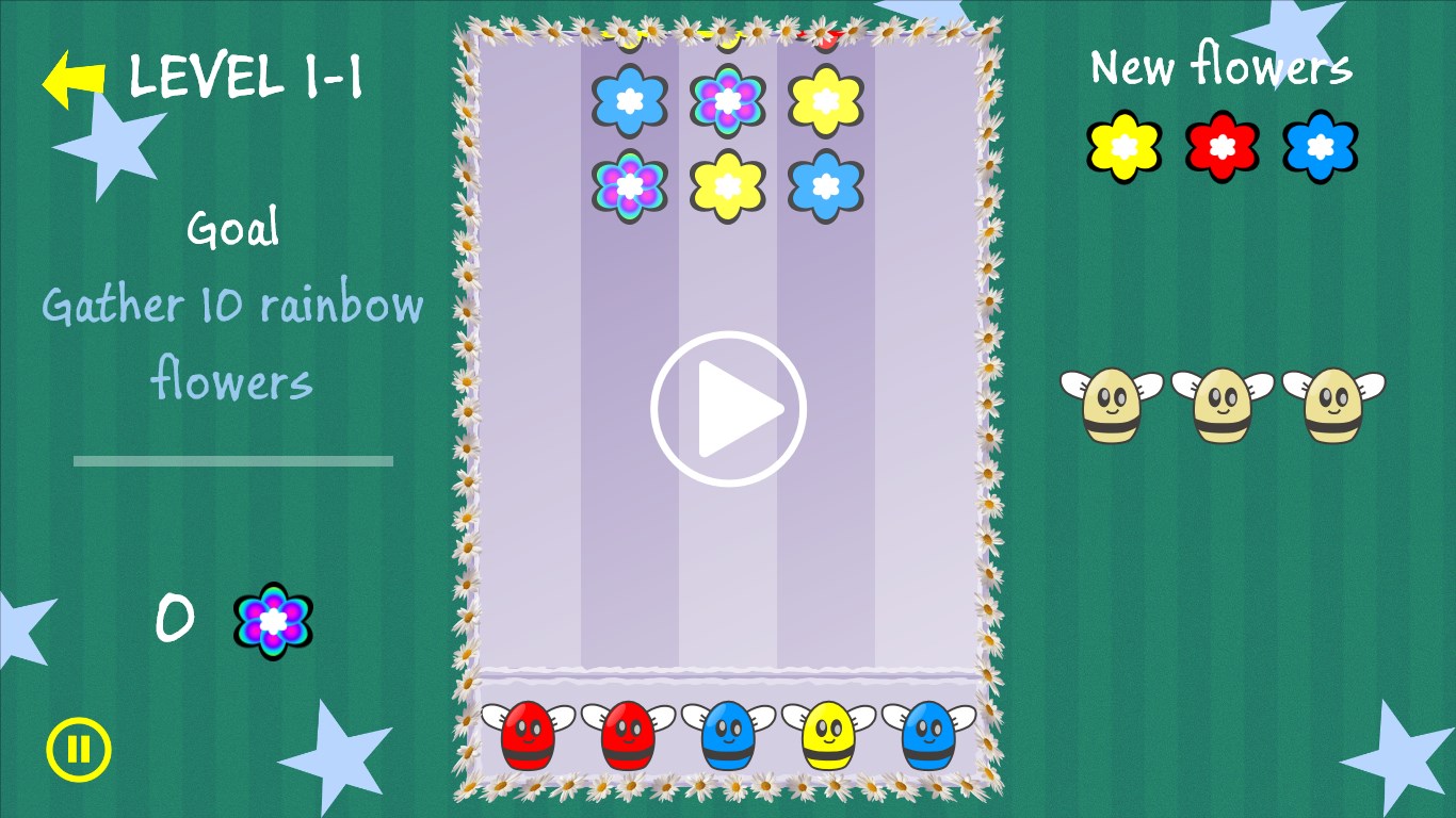 Help the queen bee gather rainbow flowers for her troops by tapping and matching flowers and bees, but look out for the ladybug, it will try to steal your flowers.