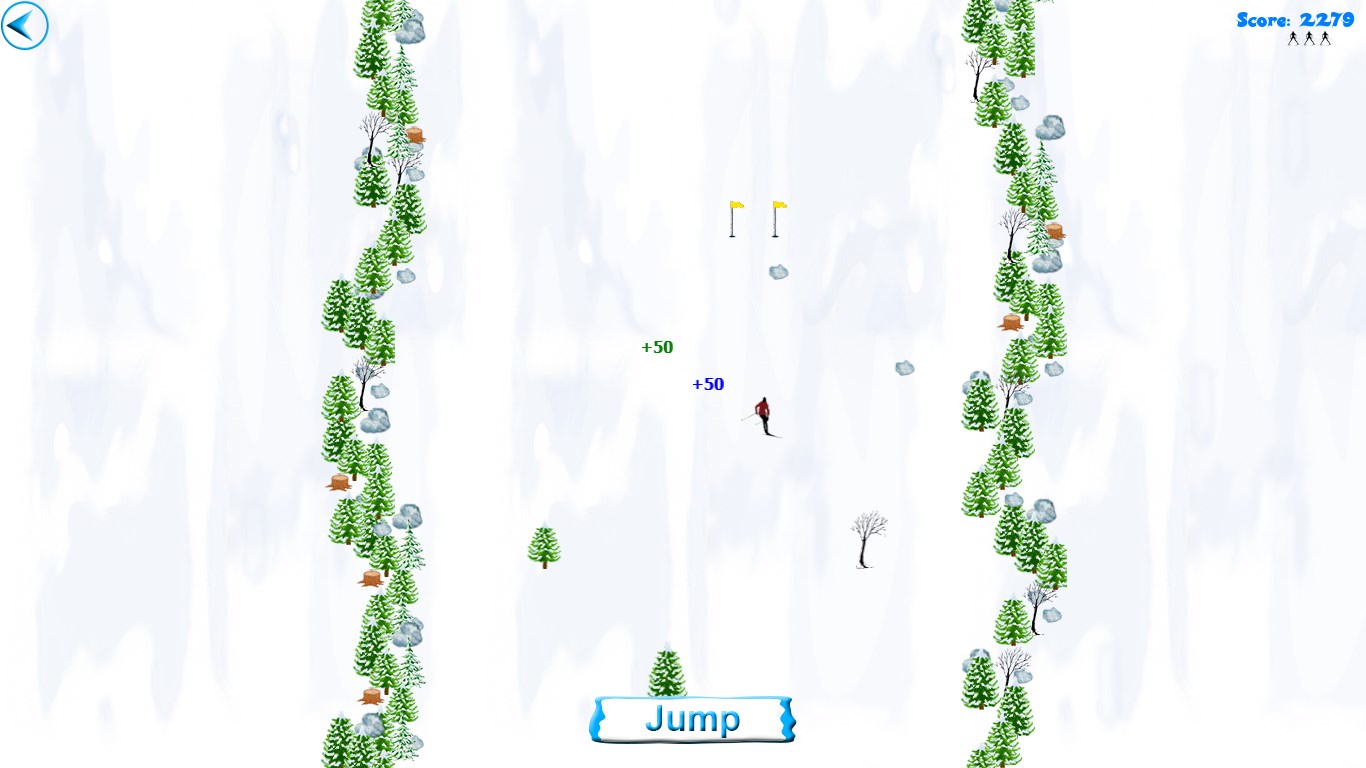 - mouse - skier will move towards position of the mouse cursor while you hold left mouse button pressed. Click "Jump" button to jump.