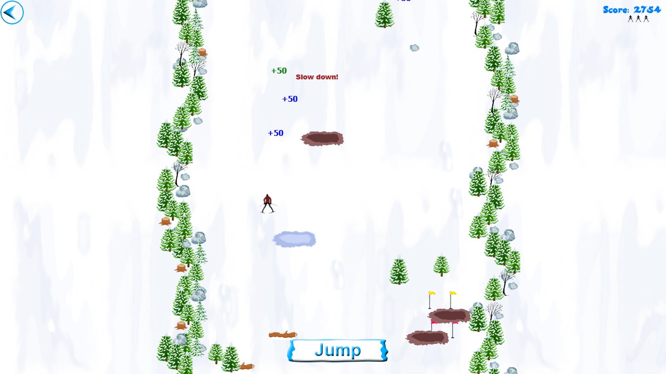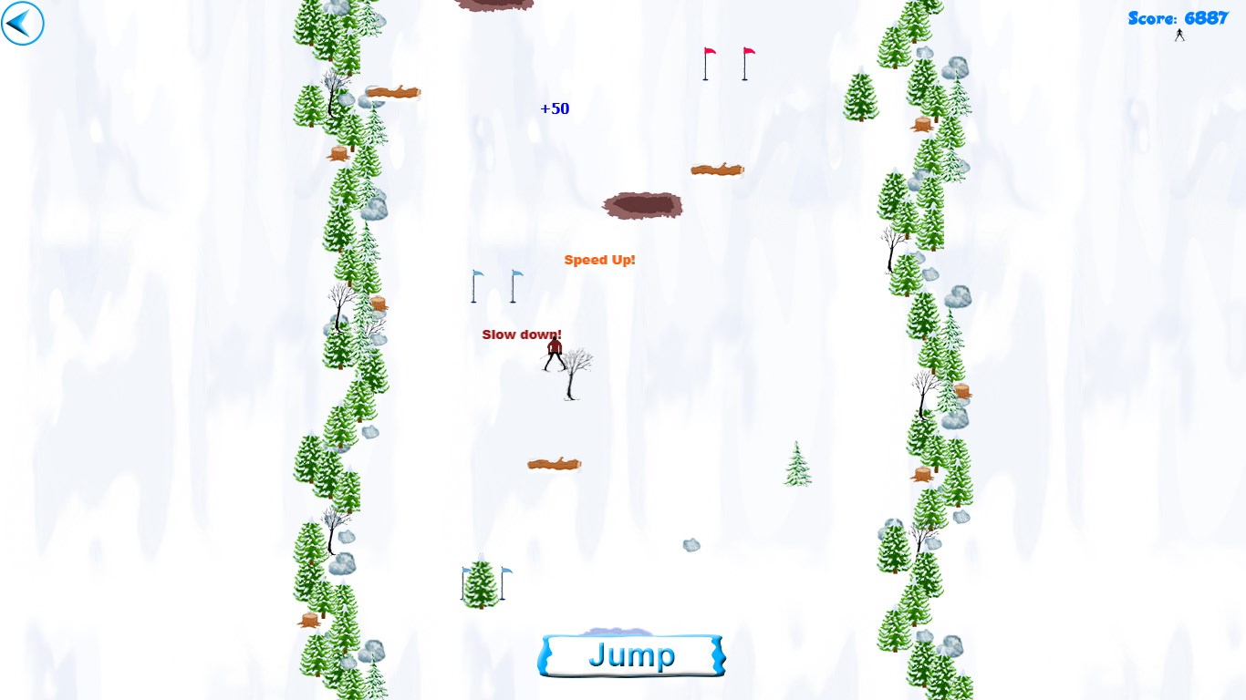 - touch screen - skier will move towards where you touch the screen with your finger. Tap "Jump" button to jump.