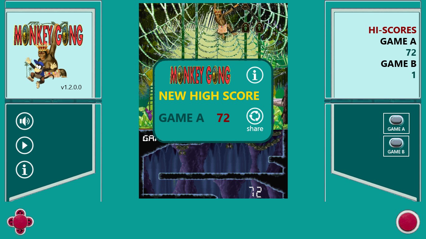 Tribute to vintage Game & Watch handheld electronic games, Monkey Gong gathers the best of experiences.