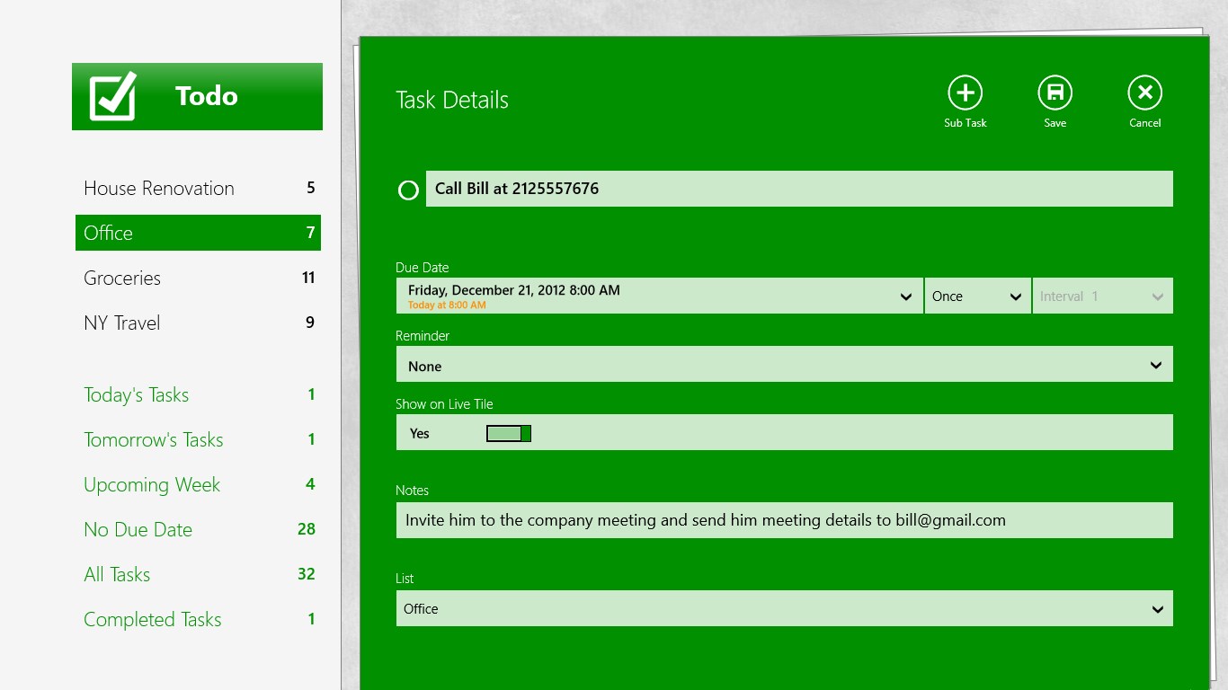 ★ See your tasks on the app's live tile, and set tasks notifications.
