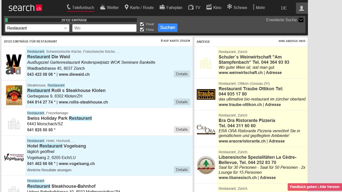 Our phone book with the official, up-to-date data from Swisscom Directories AG.