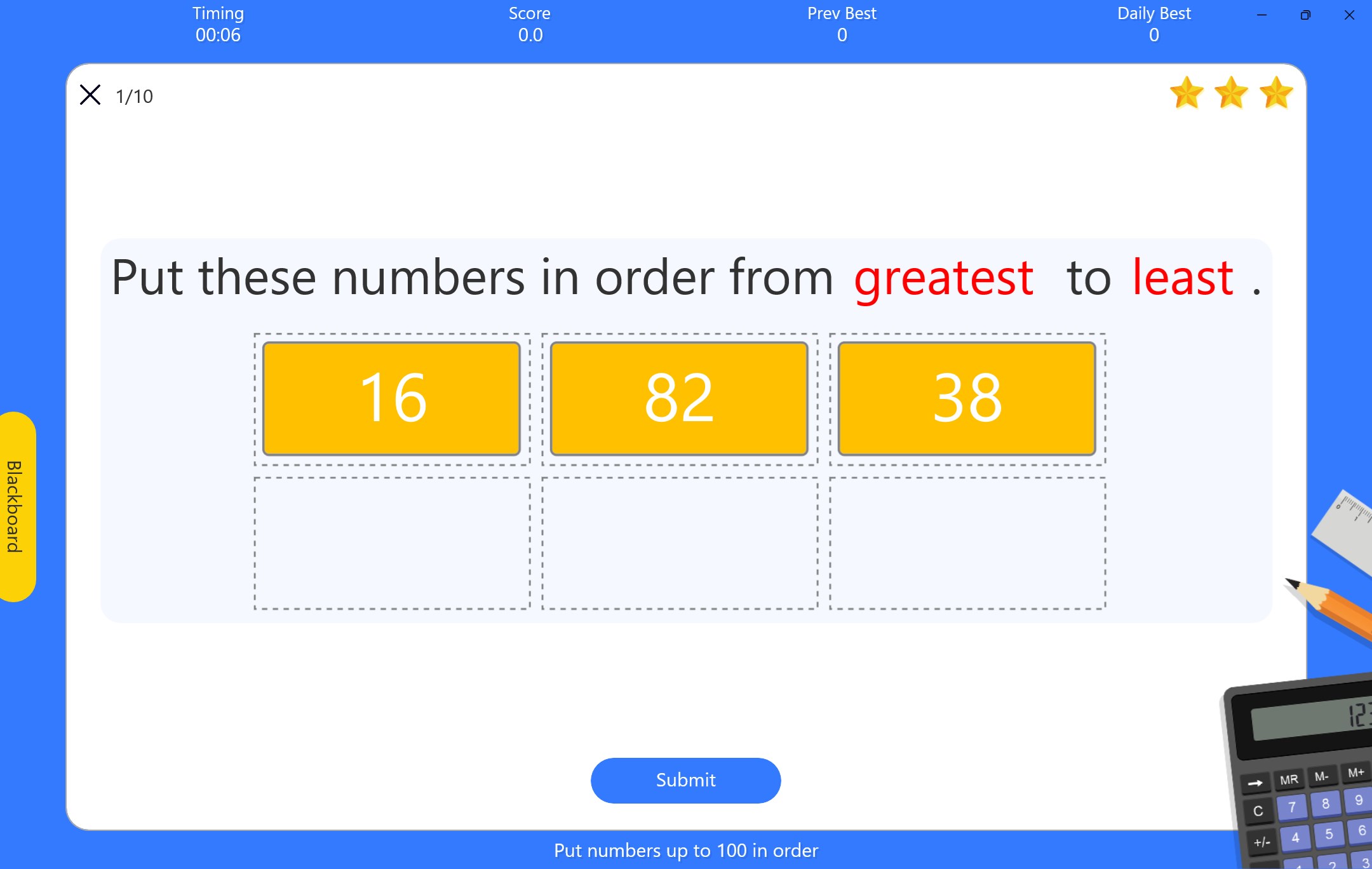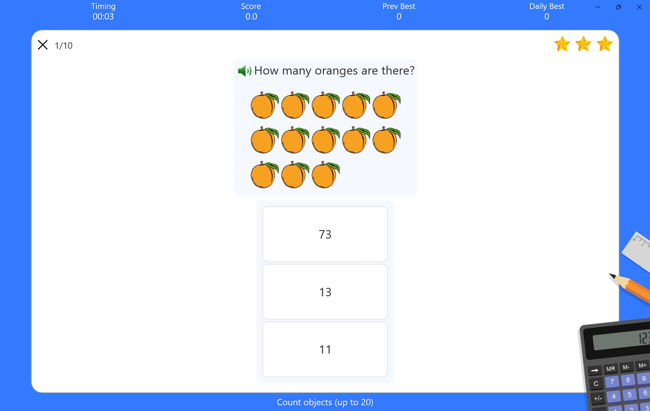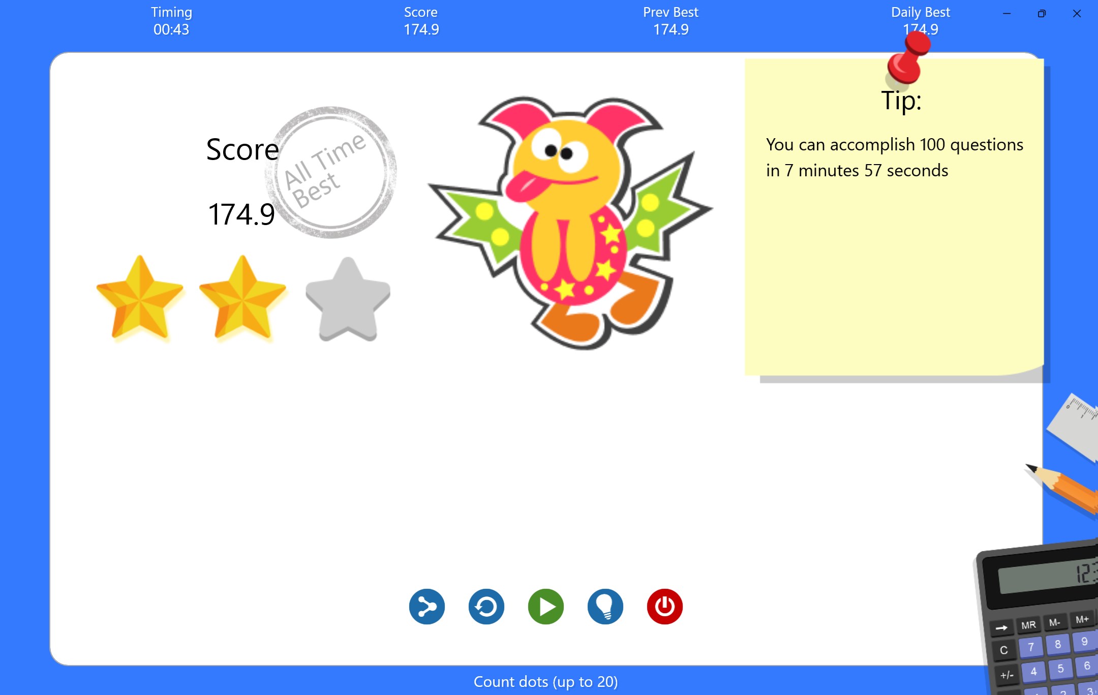 Additional ExerciseSubtraction ExerciseMultiplication ExerciseDivision ExerciseDecimal ExerciseUnary linear equationFraction ExerciseDecimal ExerciseMeasure ExerciseArithmetic Laws ExerciseTo Find law ExerciseStats of the resultPower ExerciseExtraction ExerciseGeometry ExercisePlay with 24 pointsPlay with SudokuPlay with Match CardOver 1000 math skillsMath play and practices
