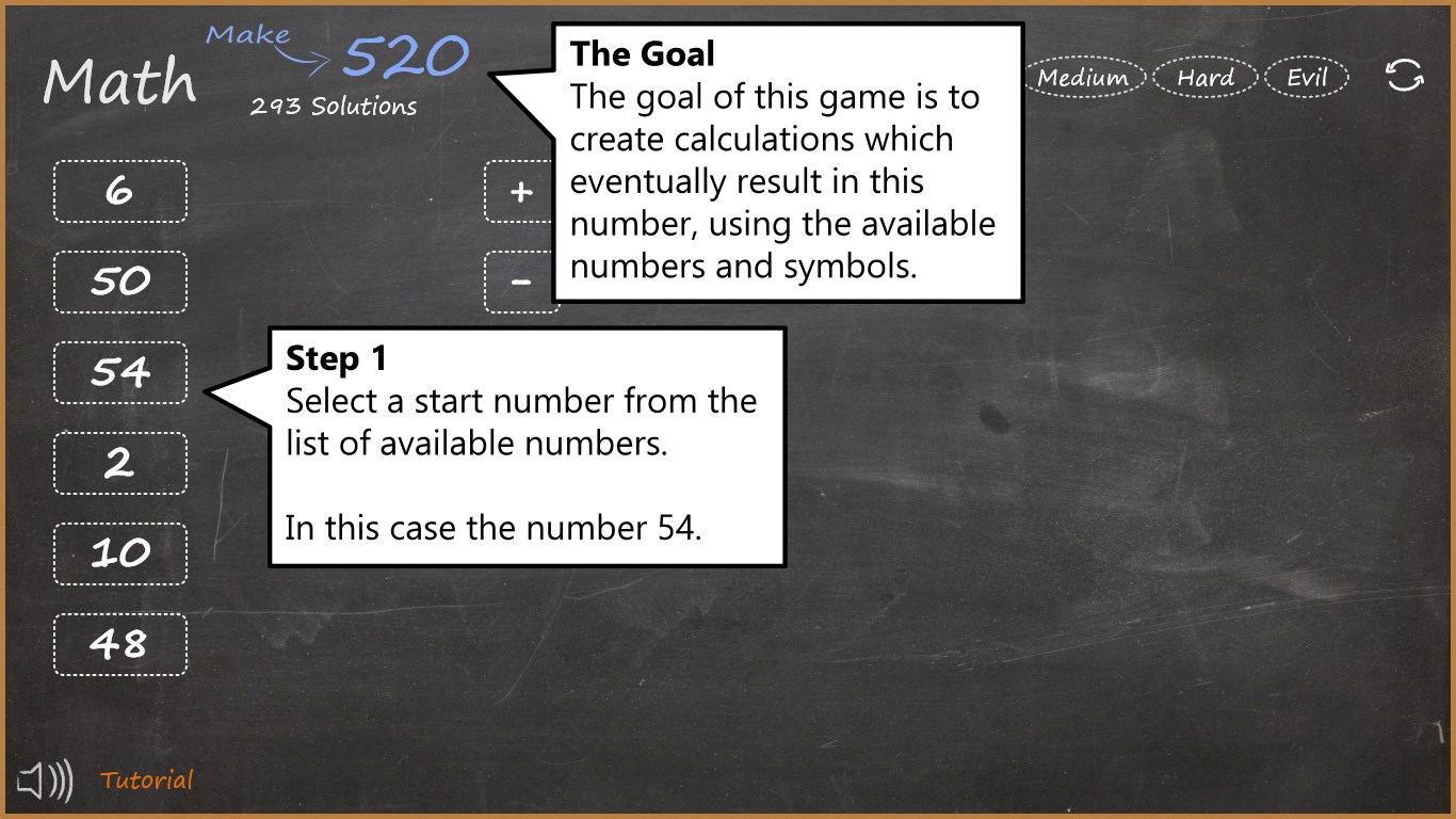 The goal of this puzzle game is to create calculations which eventually result in the given number, using the available numbers and symbols. You may use each number only once. This game will train your mathematical skills and will give you hours of fun.