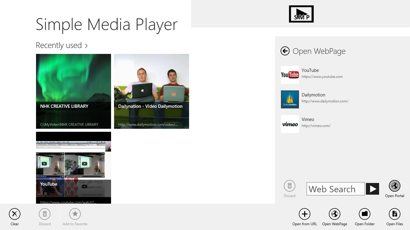 "Simple Media Player (SMP)" is a media player can play the video/music files on the computer and web site in the same way.