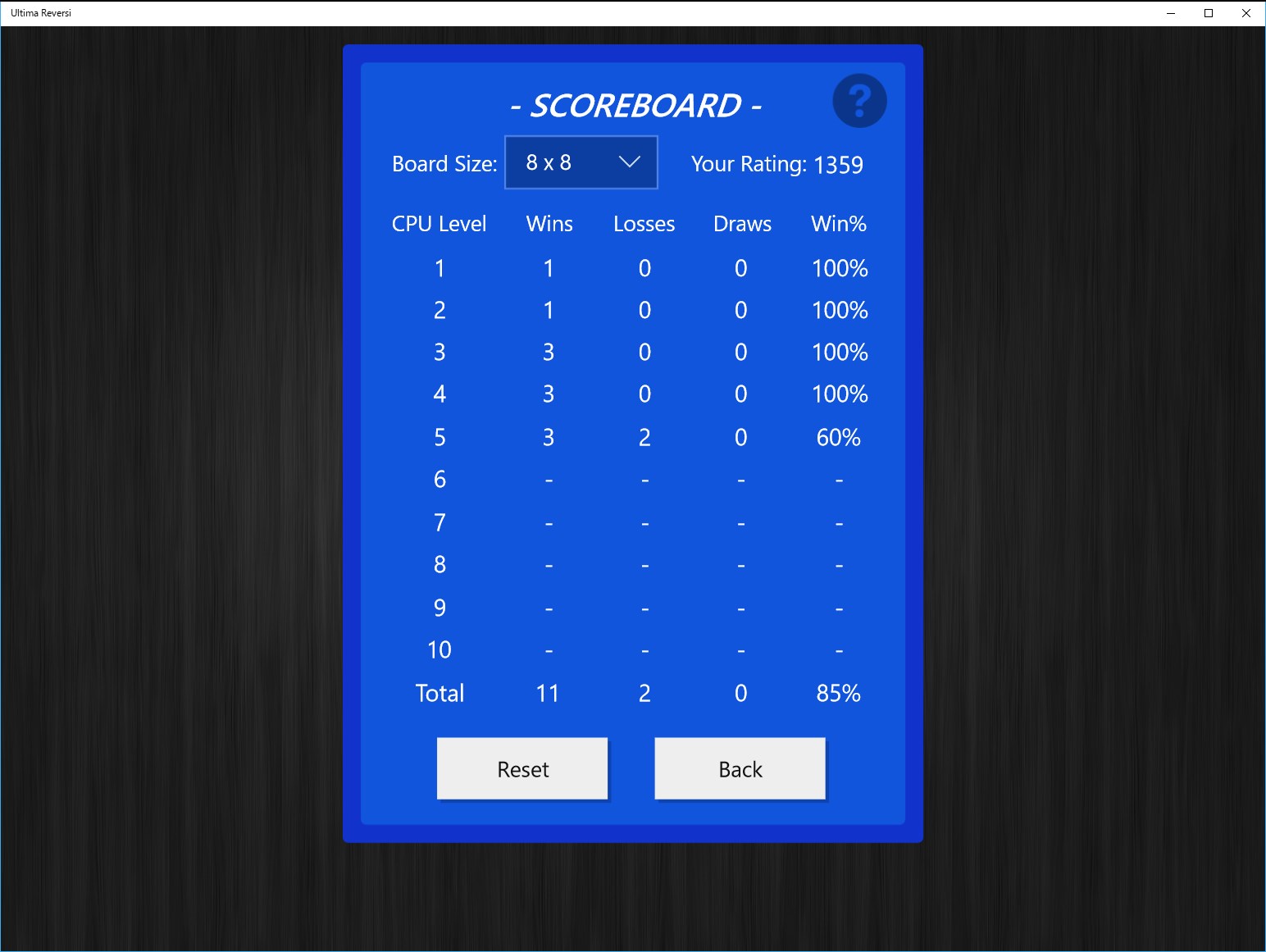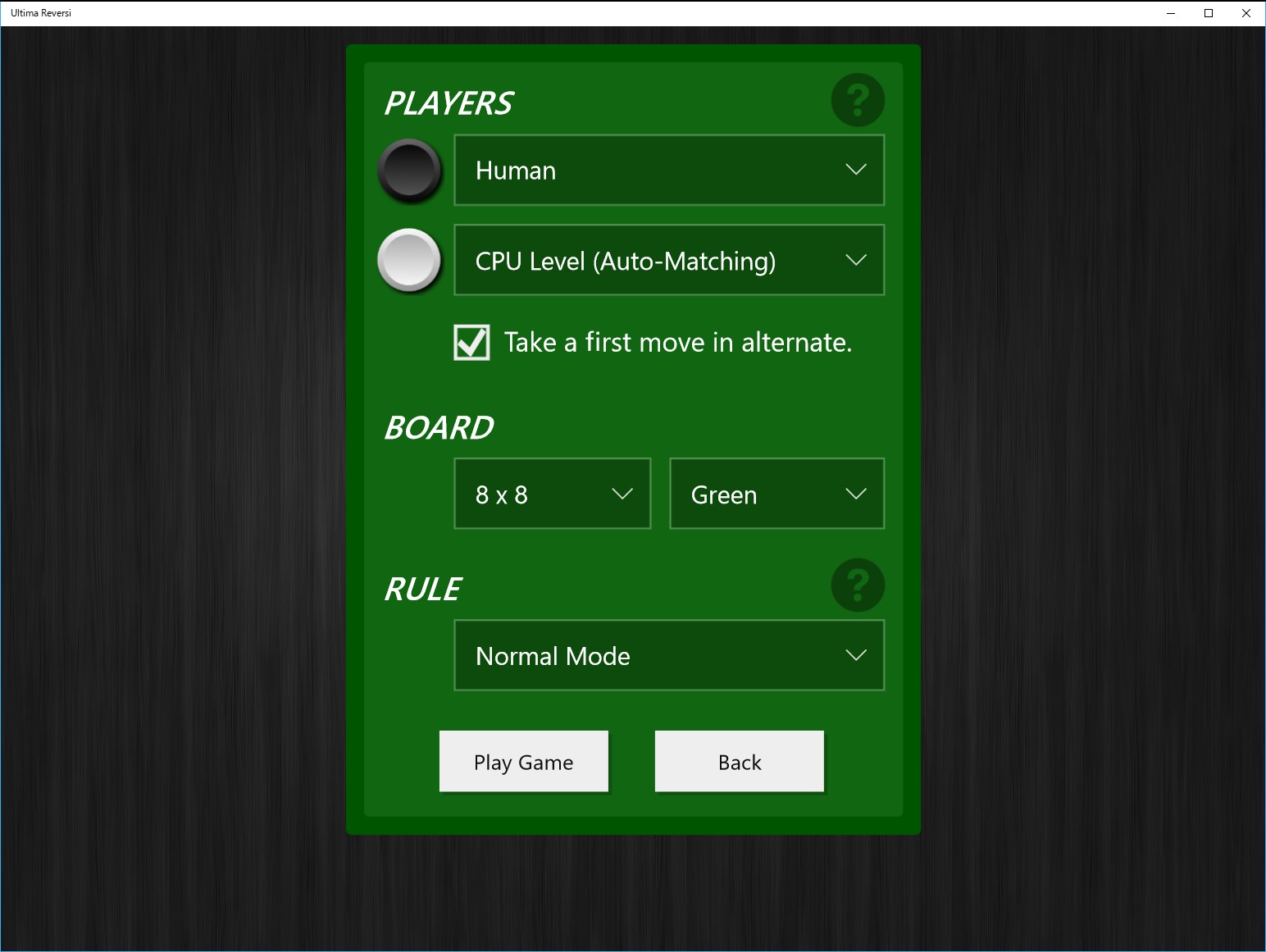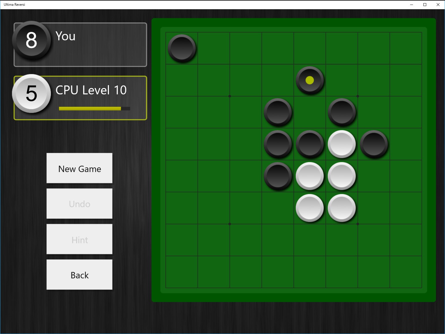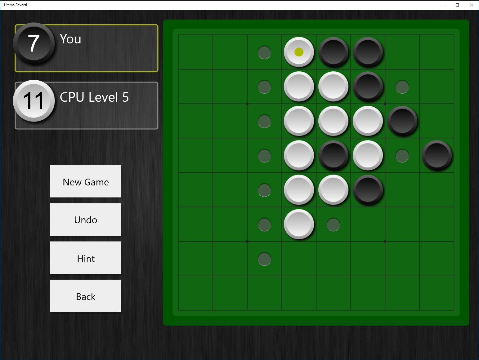 Ultima Reversi is an implementation of Reversi, having many great features to customize the game and make it more interesting. Challenge your strategic skills with Ultima Reversi!