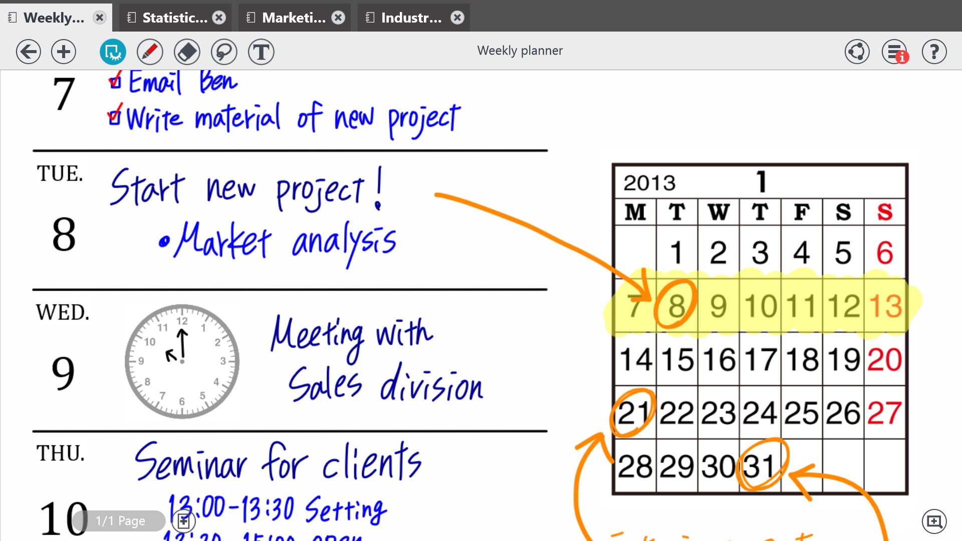 • Write, sketch or draw notes with a variety of pens, paper layouts and graphics, including calligraphy pens and inks