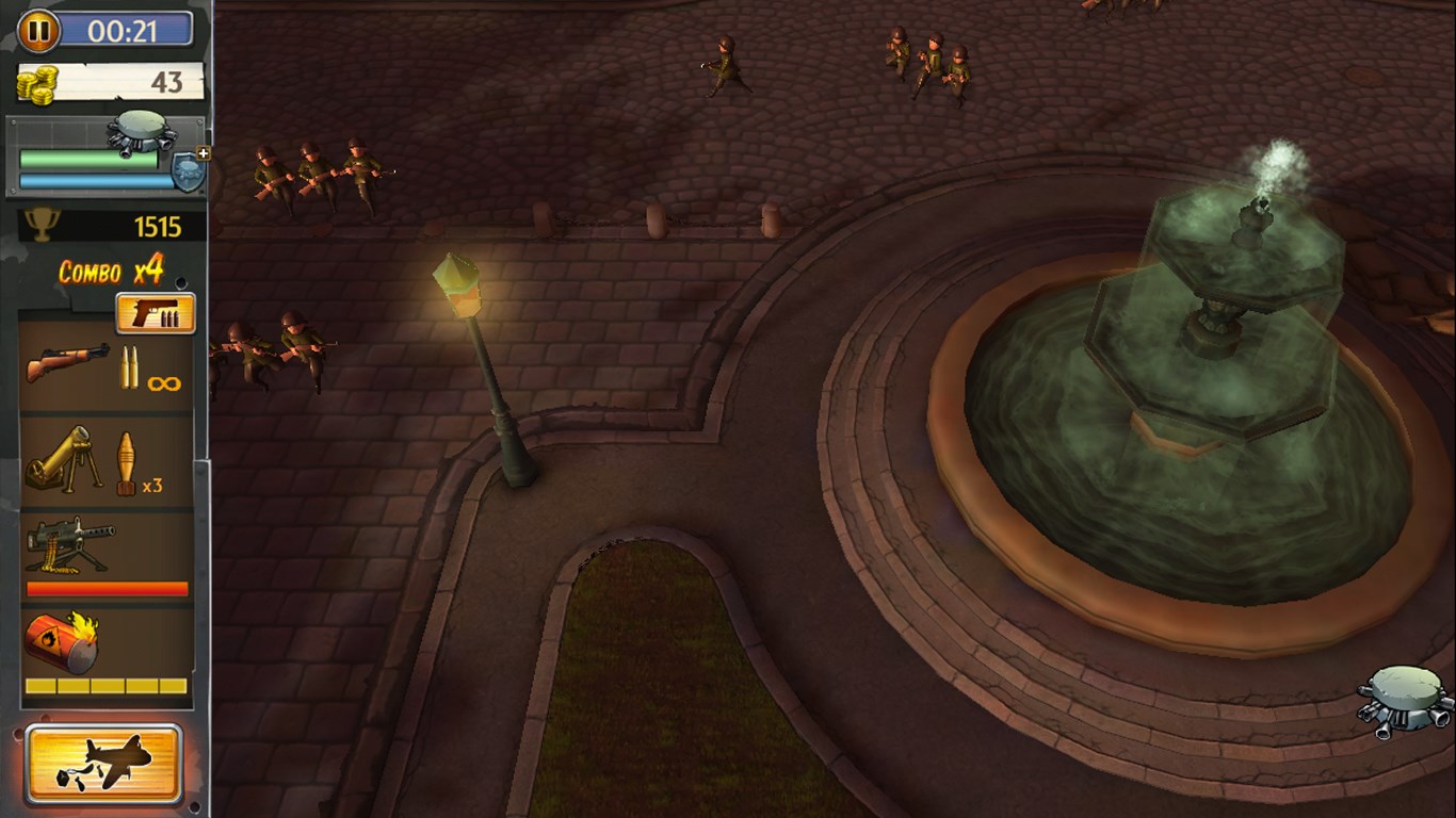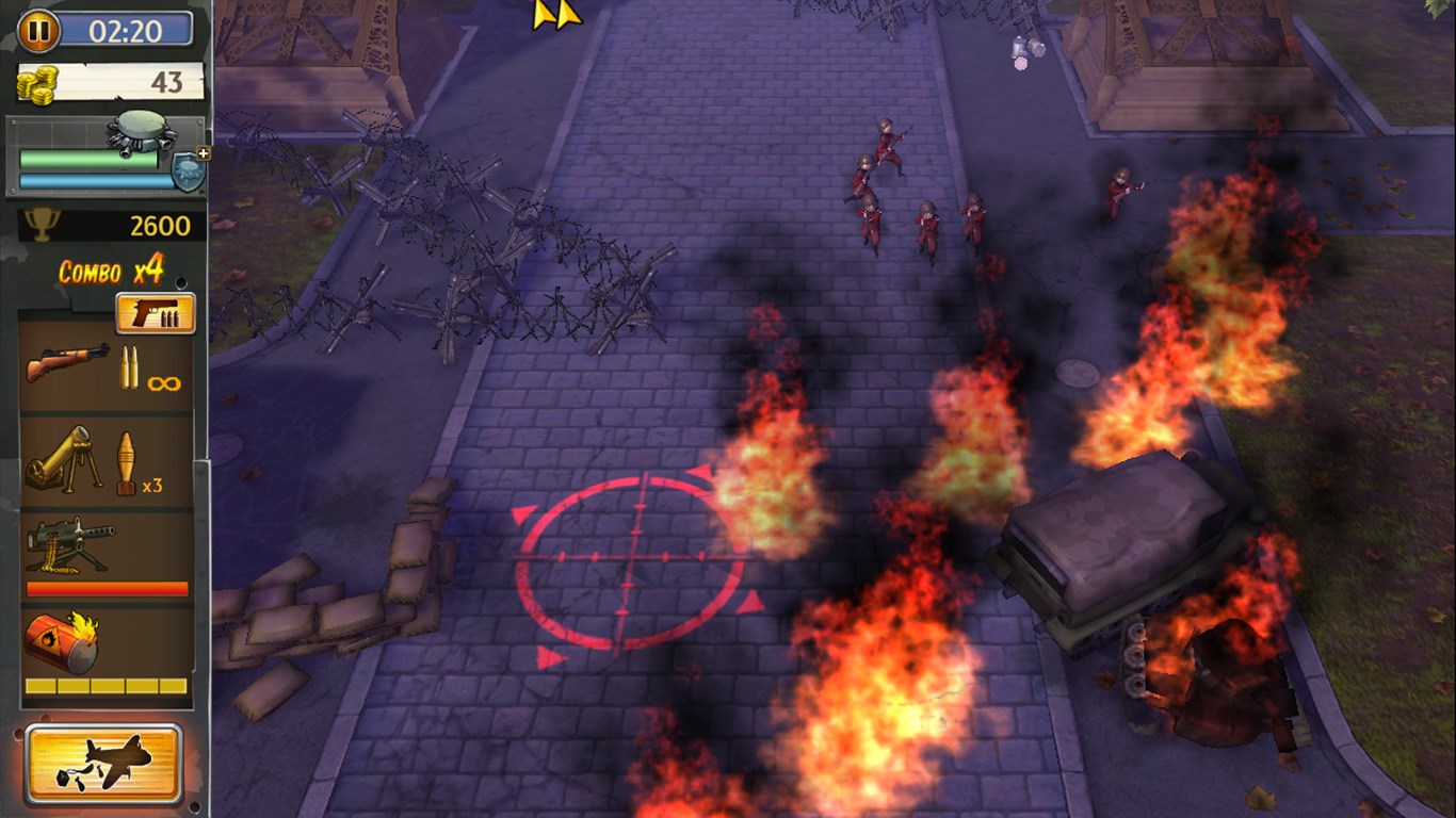 Unique stunning 3D graphics for mainstream tower defense games.Gain tactical advantages by destroying elements of the map.21 missions of increasing difficulty in campaign mode.8 weapons (rifle, mortar, flamethrower, napalm, etc.), one anti-infantry bomb and one anti-tank bomb.Two game modes: Endless and Campaign.
