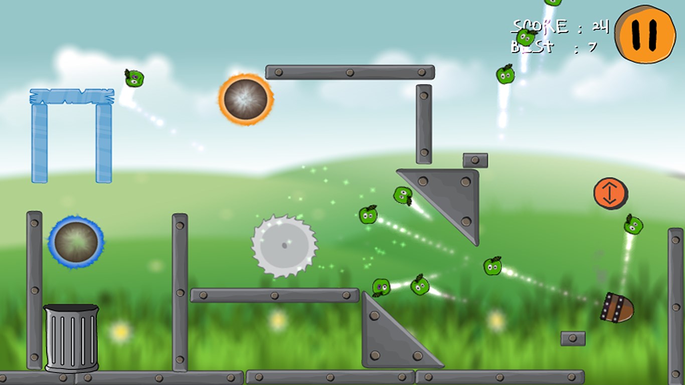 Launch your apples and get it in the bin in the fewest shots possible. Flipping gravity, portals and crates....lots of crates, are standing in your way!