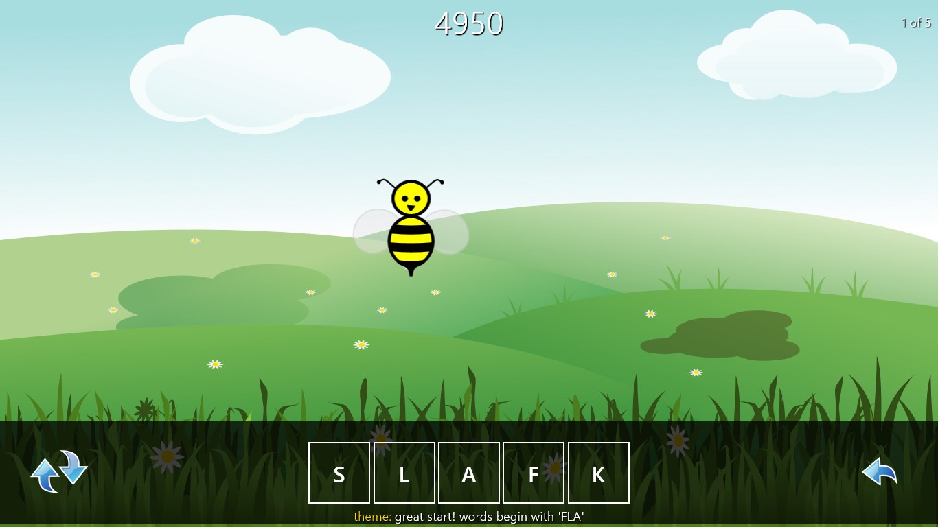 Each level has a random theme that will help you figure out the mixed up word. If you can't guess the word, you can spell any shorter word and still get points!