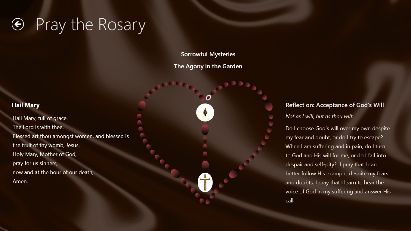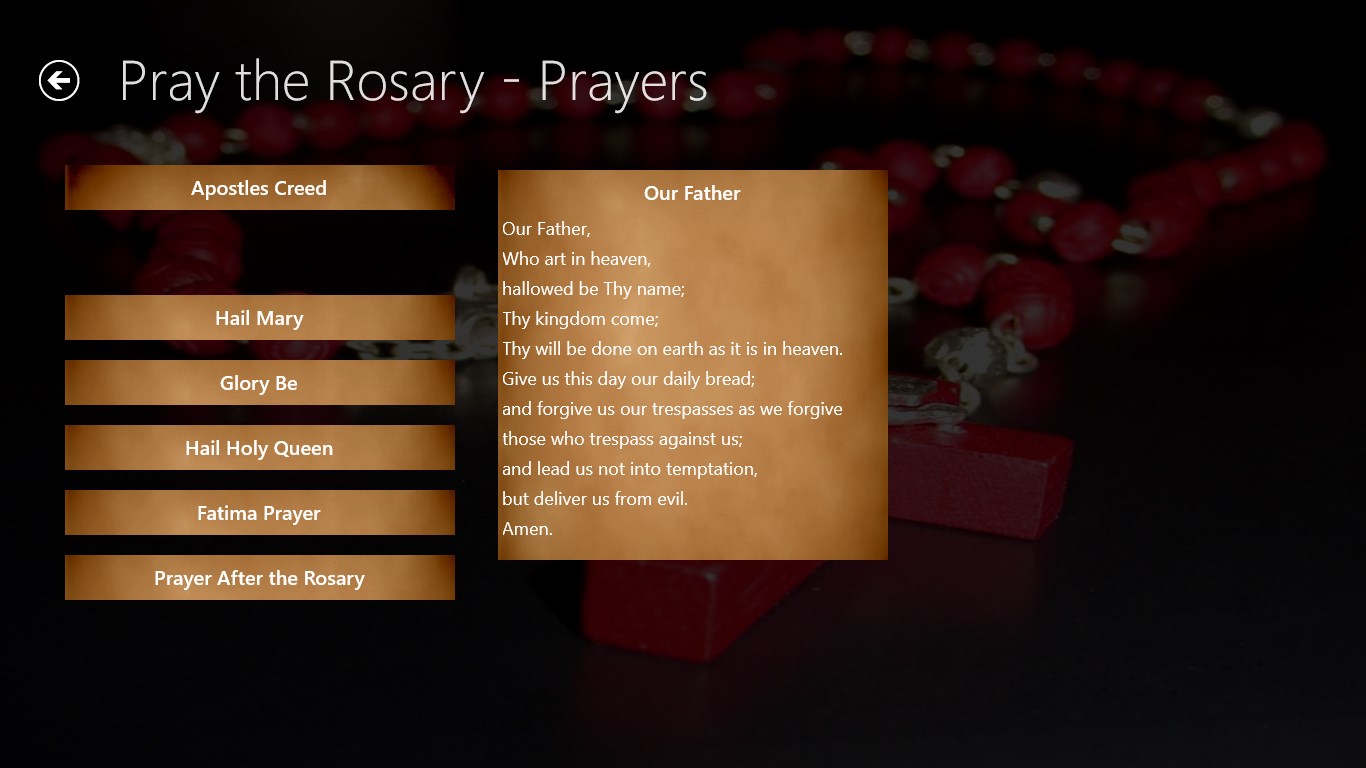 myRosary is a simple app that provides you with all of the prayers of the Rosary and a set of beads to pray with.