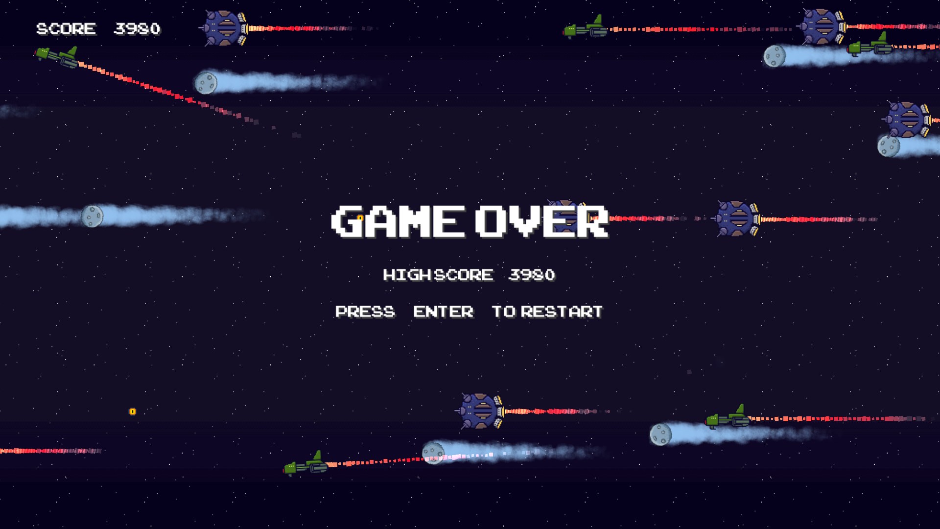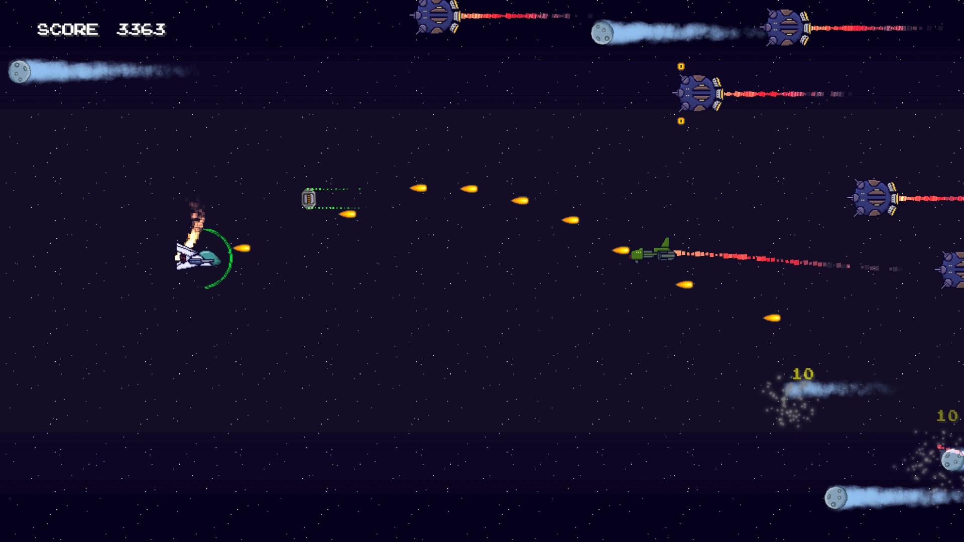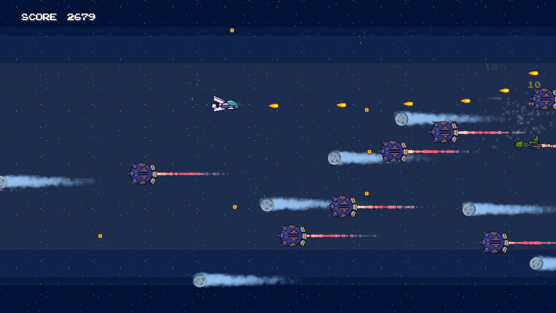 Try and out maneuver the evil fleet bearing down on you. Pixel Raider is 2D side scrolling space shoot em up survival game. How long can you can you escape from the enemy?
