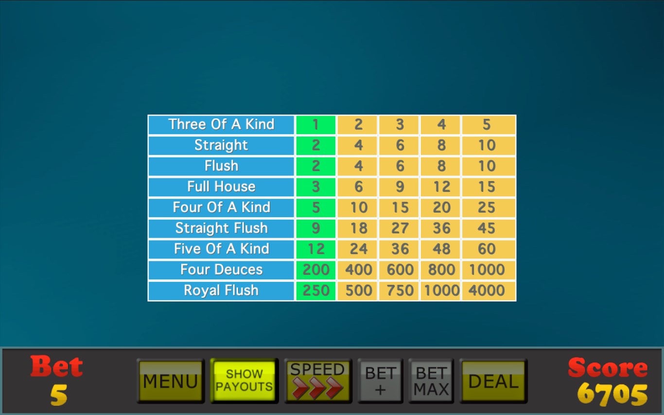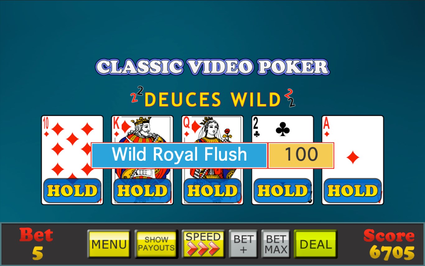 video poker, jacks or better, deuces wild, vegas, casino, slot machine, HD graphics, Sounds