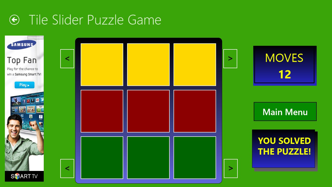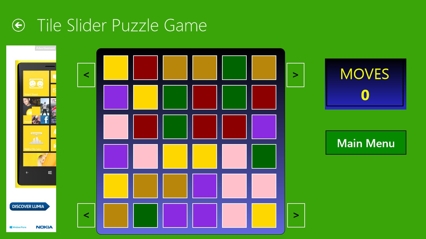 The Tile Slider Puzzle is about moving tiles up and down as well as right or left in order to set each row to the same color. You need to do this in the fewest moves possible. Each time you play, the board is randomized to allow for different challenges. Multiple game board sizes increase the difficulty.