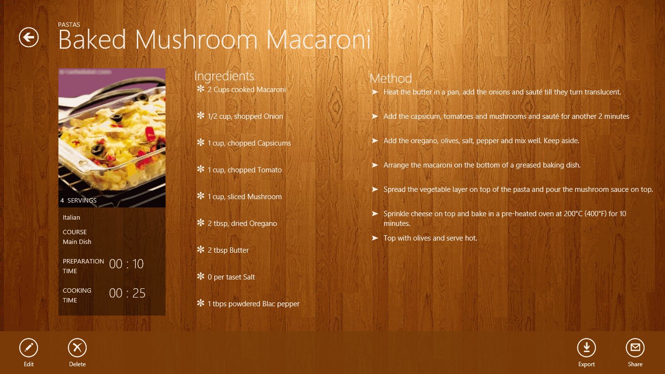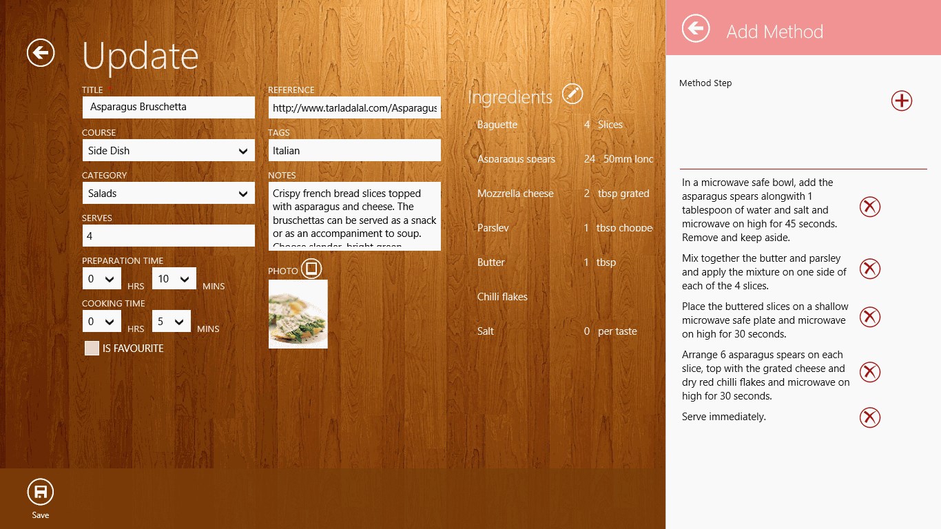 - Enter your Recipes easily using auto-complete box for ingredients.