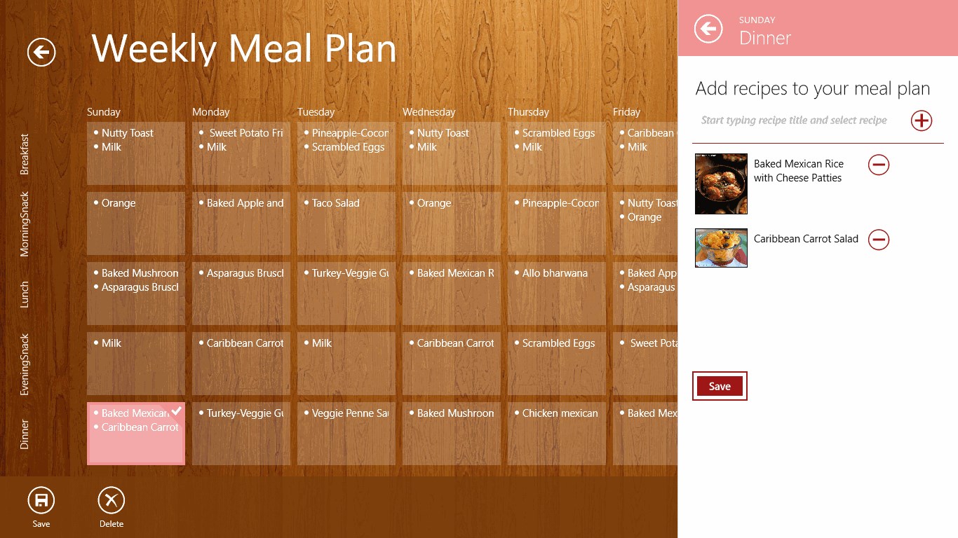 My Kitchen Diary helps you to plan meals using the meal plan calendar and let every member of your family know what to look for.