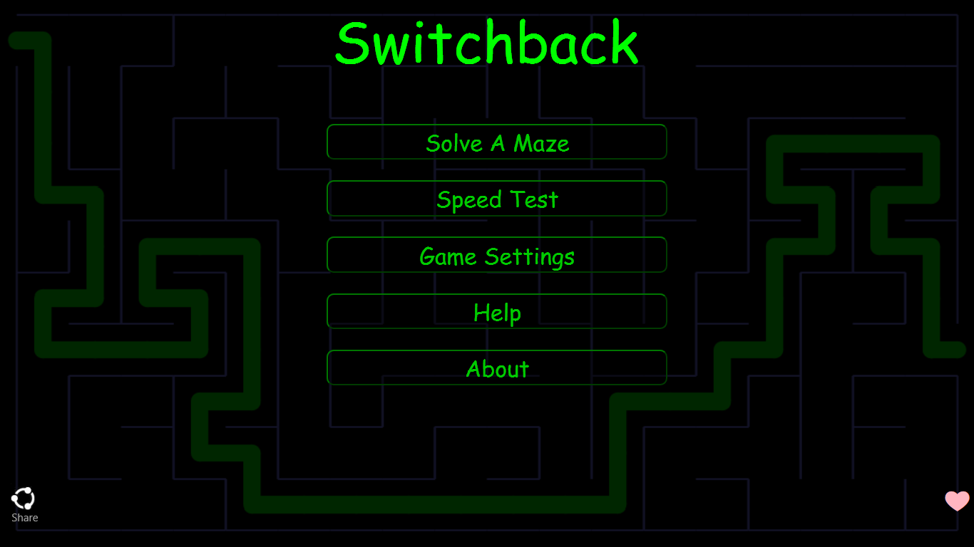 Switchback is a free, fun, and addictive maze game for all skill levels. Both young and old will enjoy testing there ability to maneuver their way through the series of colorful mazes. With each pack getting increasingly harder, the challenge to succeed is never ending.