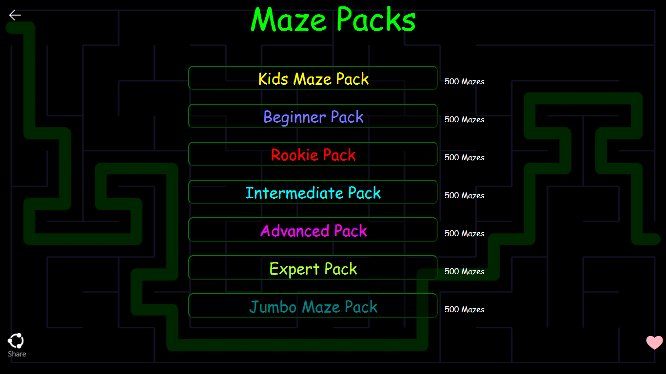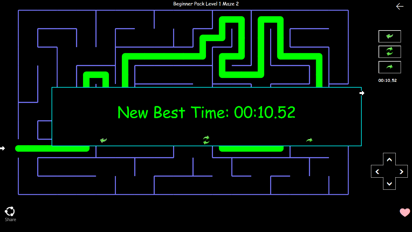 If solving the mazes at your own pace just isn't challenging enough, tap on Speed Test to see how fast you really are. You will then be able to select the Maze Pack and maze that you would like to solve. Displayed above the maze you will see a timer keeping track of every second it takes you to complete each level. Once completed the game will automatically keep track of your best times. You can always reset the maze and try to beat your record.