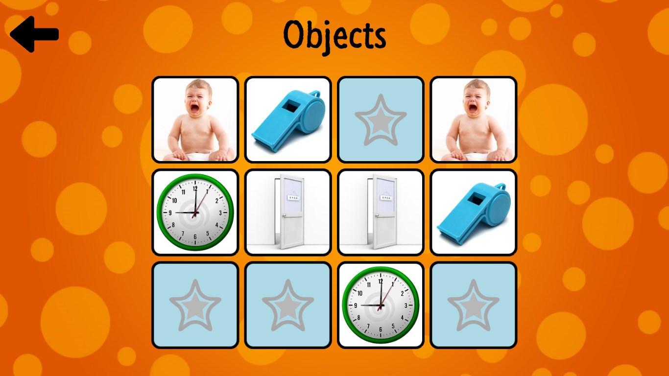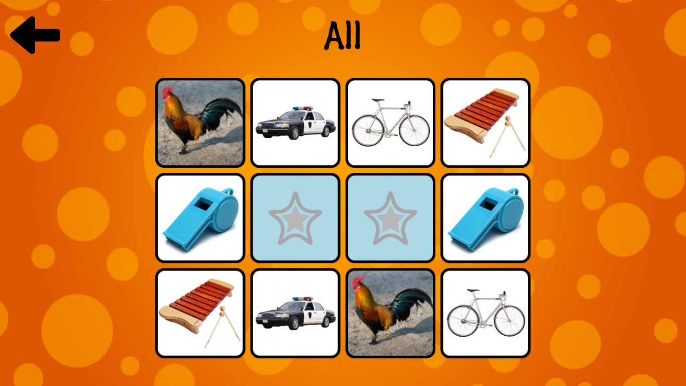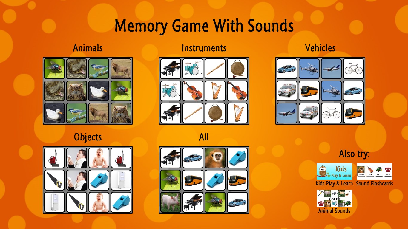 Memory Game With Sounds fun and stimulating app that teaches your kids to improve both their concentration and memory in this classic memory game.