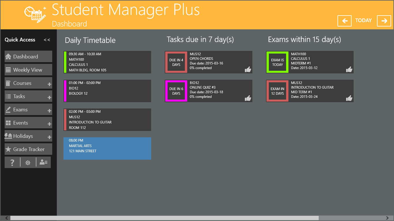 The STUDENT MANAGER PLUS will keep you on track with your Courses, Tasks and Exams.