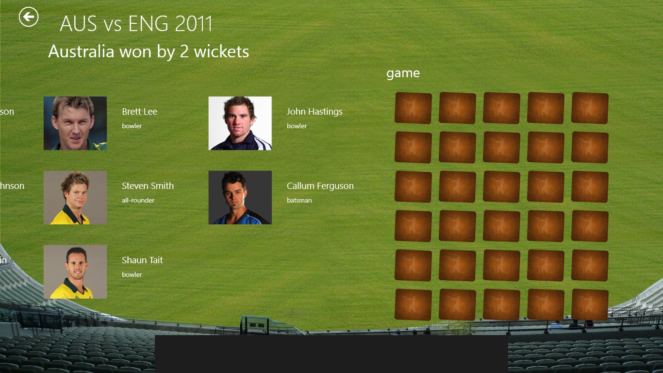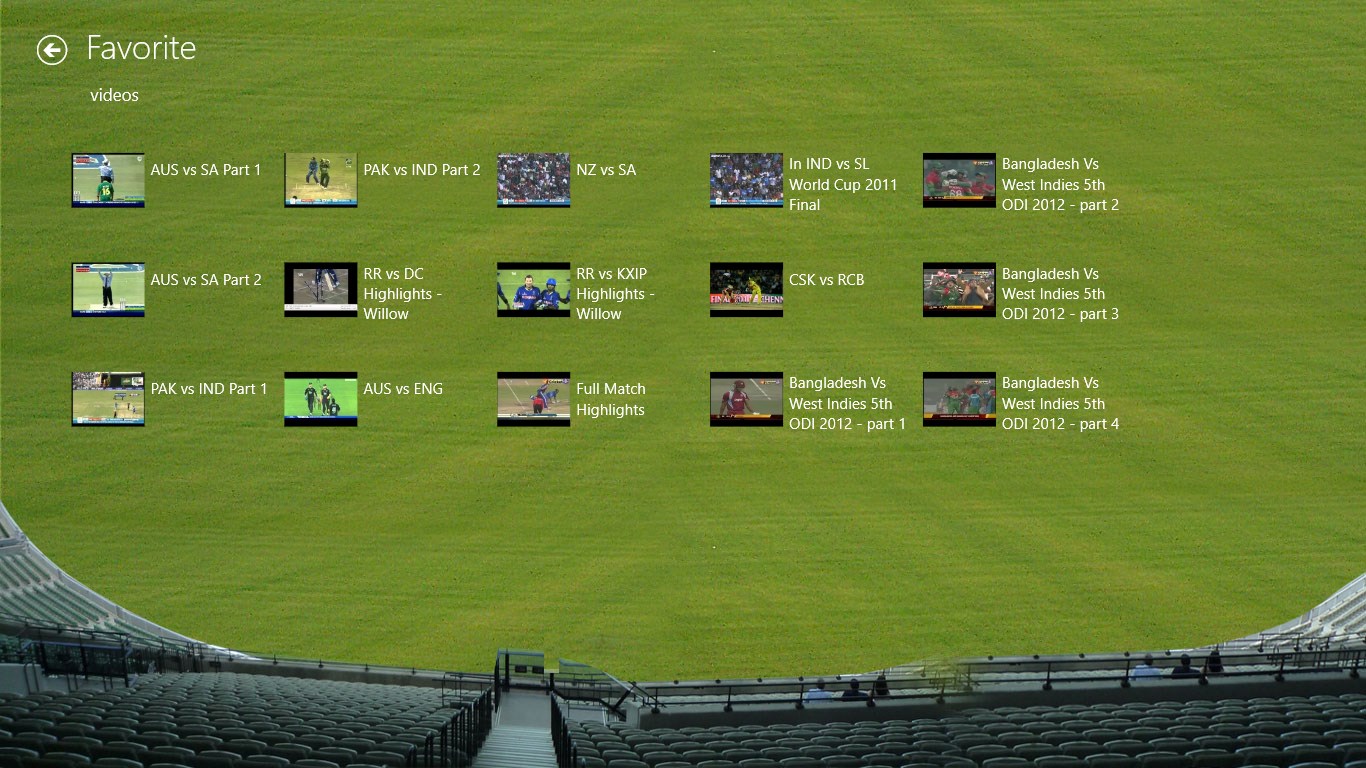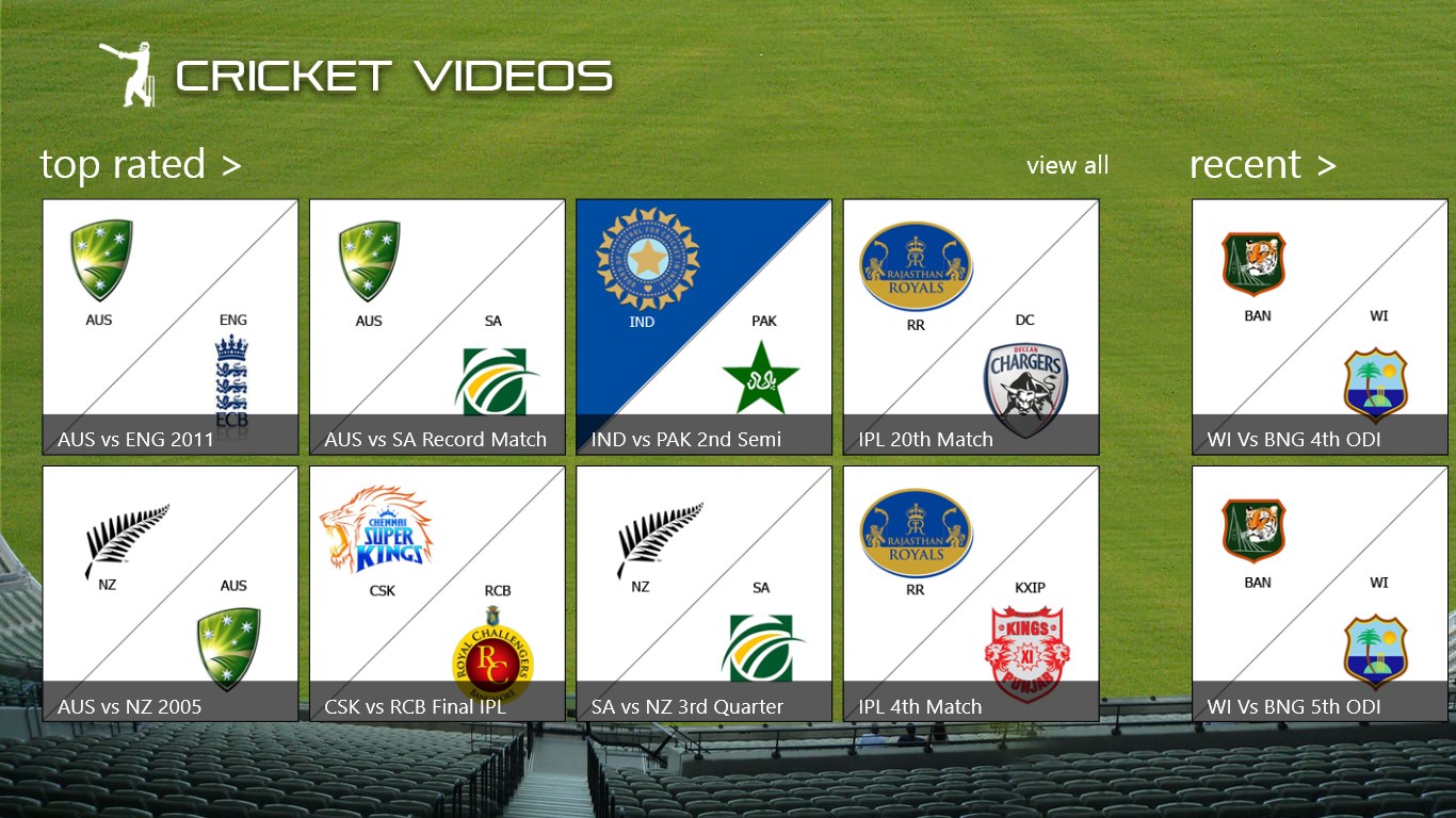 Scores and videos for all the latest circket matches.Summary score board and full score board with bowling and batting stats.Team listing for both teams with individual player pages.Player page with biographies, galleries and related matches.Play memory game based team player images.Live tile with download count and images of new matches.Keep track of your favorite matches across updates.Access history from history pagePin matches as live tiles for one click access.