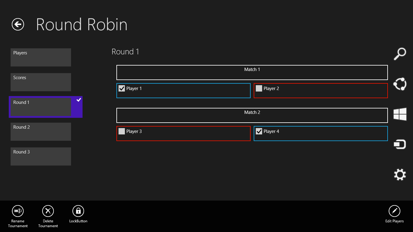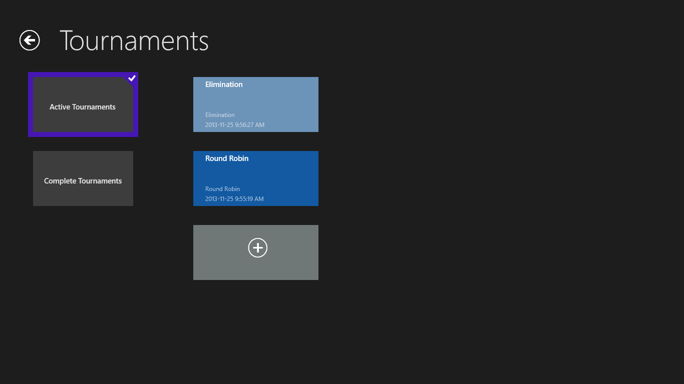 An easy to use interface keeps track of all your active and completed tournaments. TourneyMan will automatically match up players, insert bye games as needed as well as keep track of the score for you!