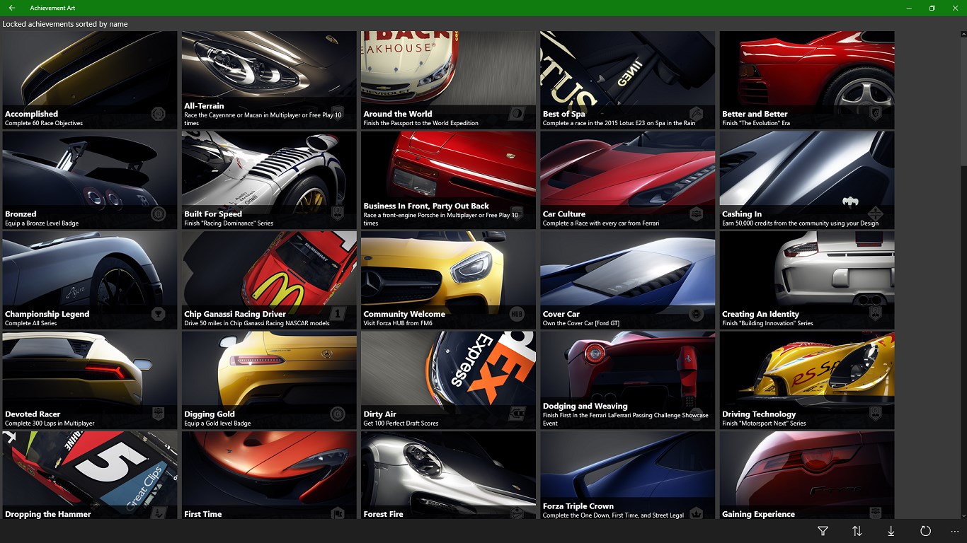 Browse achievement art you\'ve unlocked in any Xbox-enabled game!Download achievement art or set it as your wallpaper or lock screen from within the app.Download game art or use it to personalize your device.Browse your own achievements or those unlocked by your friends - all you need is their Gamertag.Sort your achievements alphabetically or by most recently unlocked. Great for seeing your most recently unlocked achievement art at a glance.A one-time upgrade to Premium unlocks advanced features across both Windows and Windows Phone.Premium feature: Download all achievement art for a game in one click!Premium feature: Browse achievement art for achievements which you have not yet unlocked, and download it!More free and Premium features to come over time.