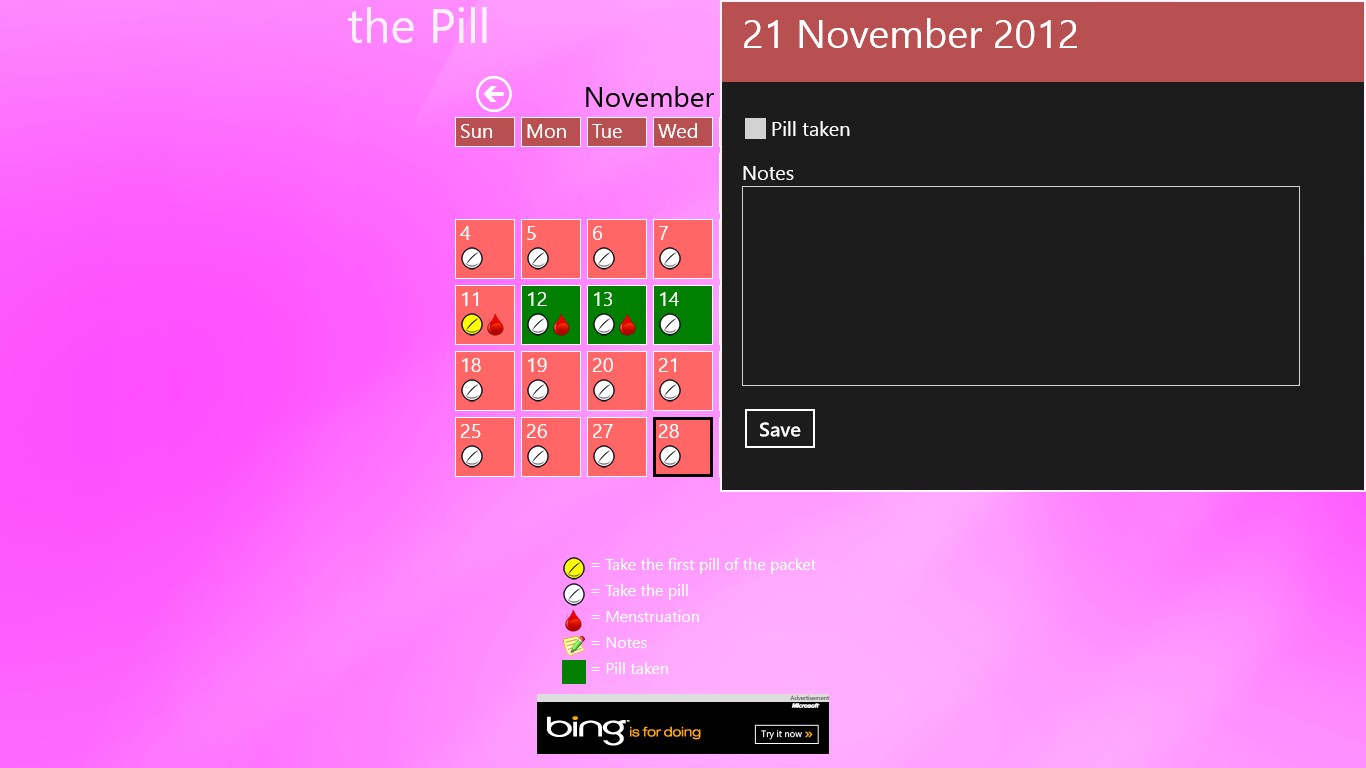 You can note now the days you have take your pill