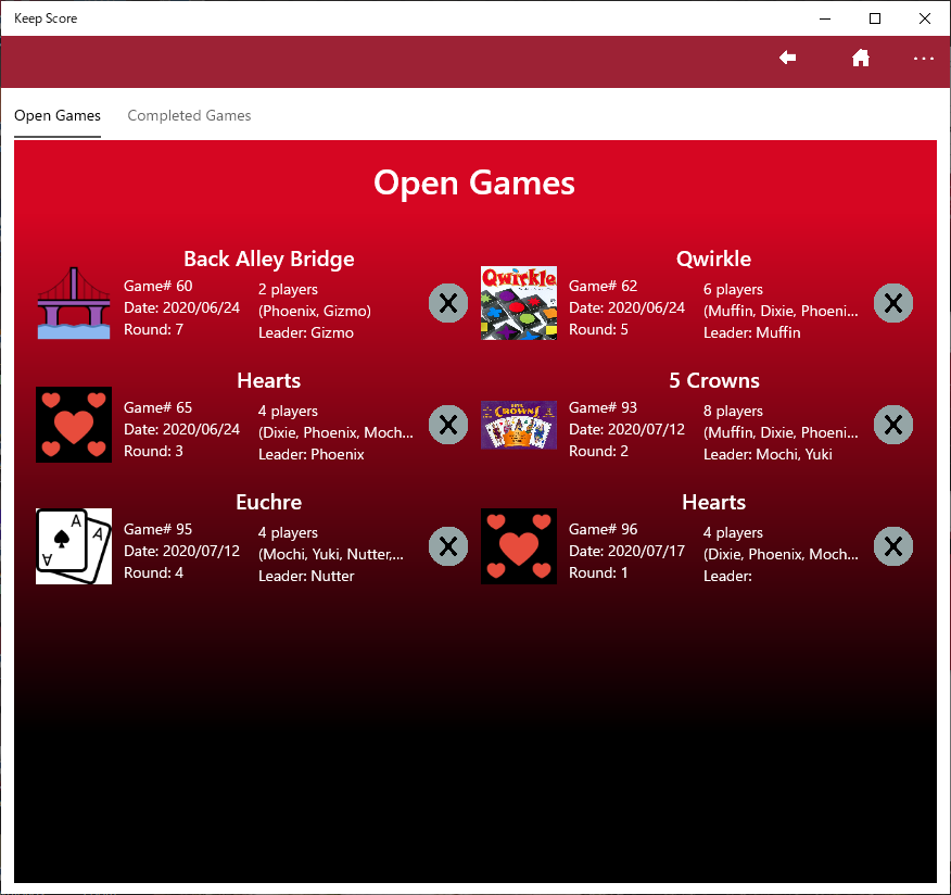 It can handle a variety of games including Hearts, Spades, Euchre, Bridge, Pinochle, Nerts, Canasta, and more. In fact, it's customizable to allow you to keep score for almost any game you want! Create your own game by entering a name, number of rounds, points needed to win, etc.