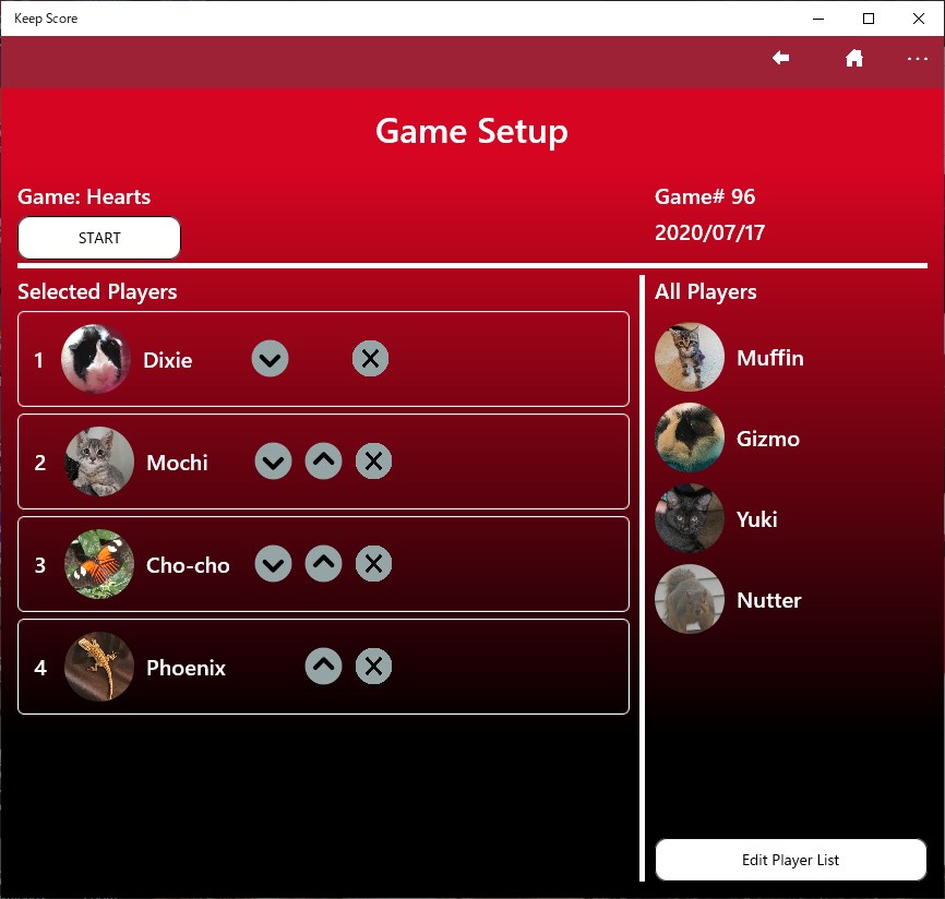 Keep score does the math for you as you score a game. It also tracks your history and statistics so you can see who holds the record for high score, who has the most wins, how many games you've played, etc.