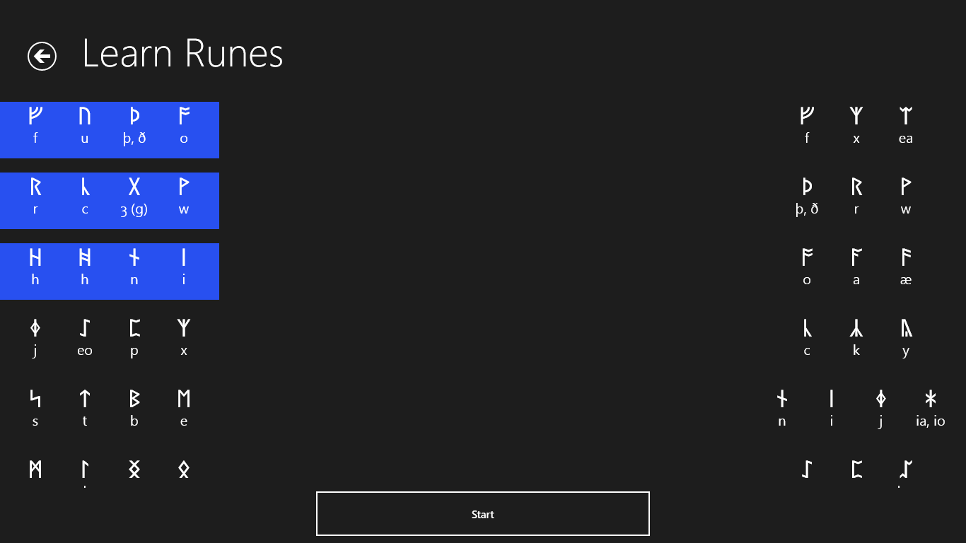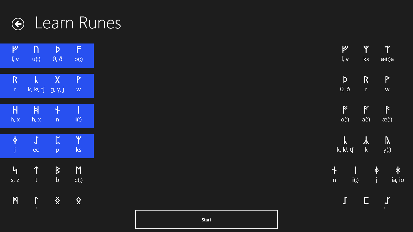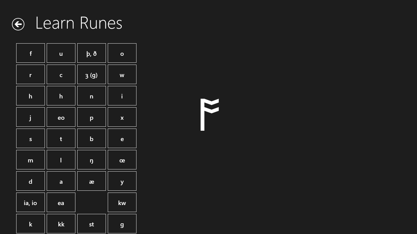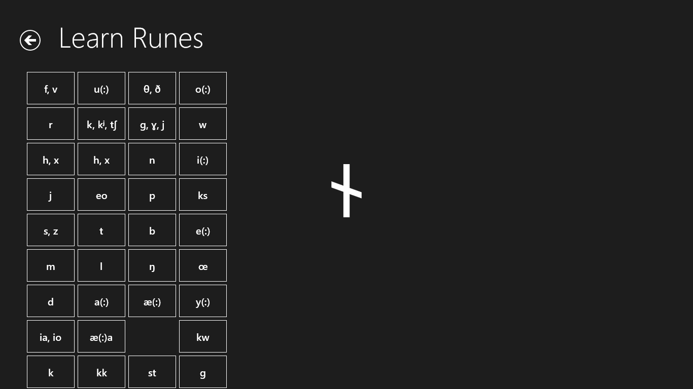 Learn Runes is a simple app for learning runes from different epochs and includes the following alphabets: