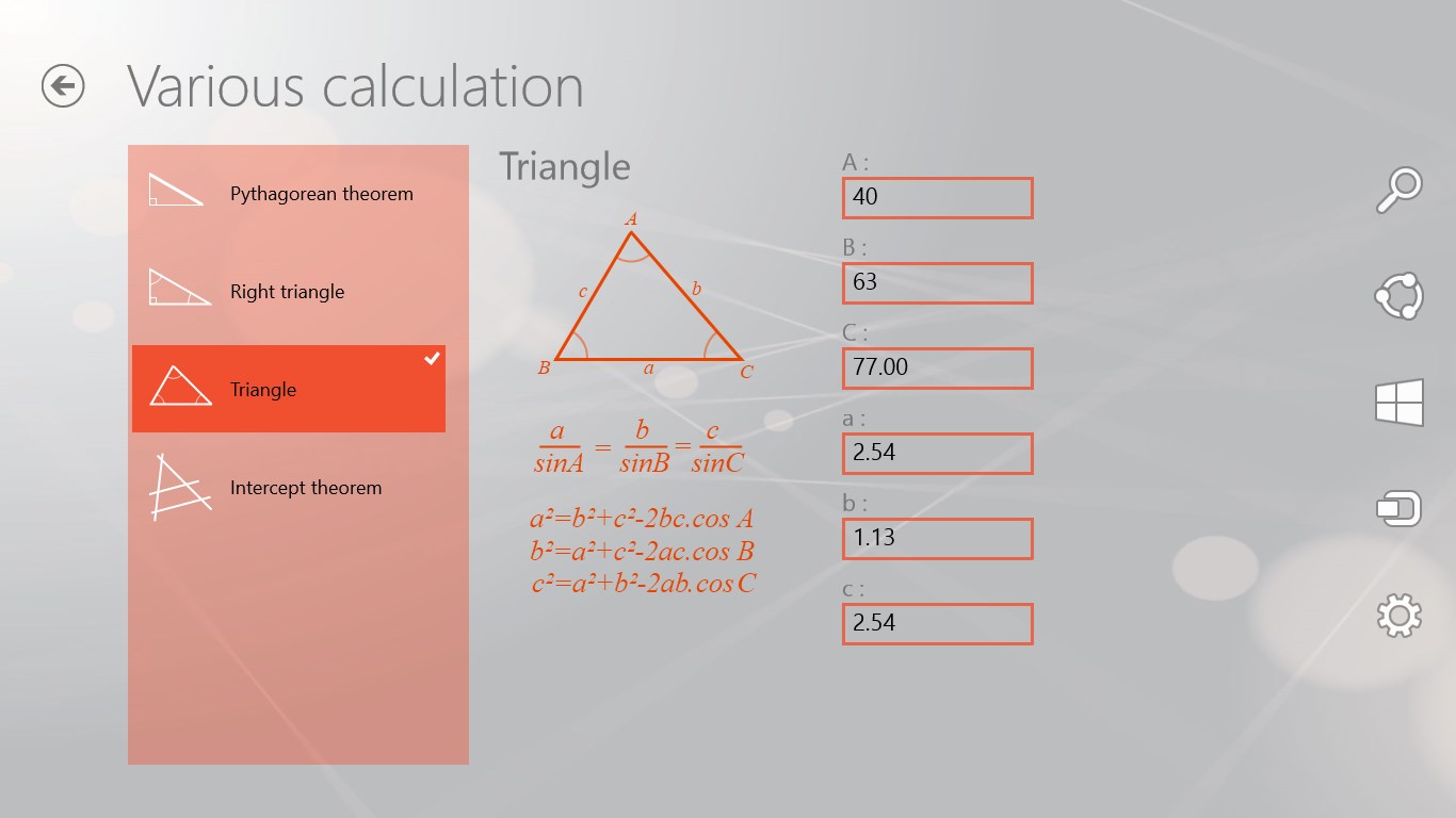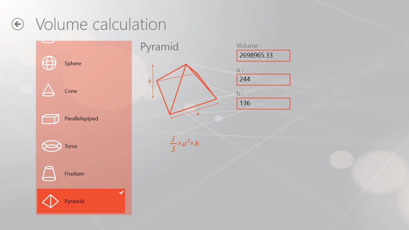 allows to determine the results of the formulas of volumes and surfaces according to the values that we have.