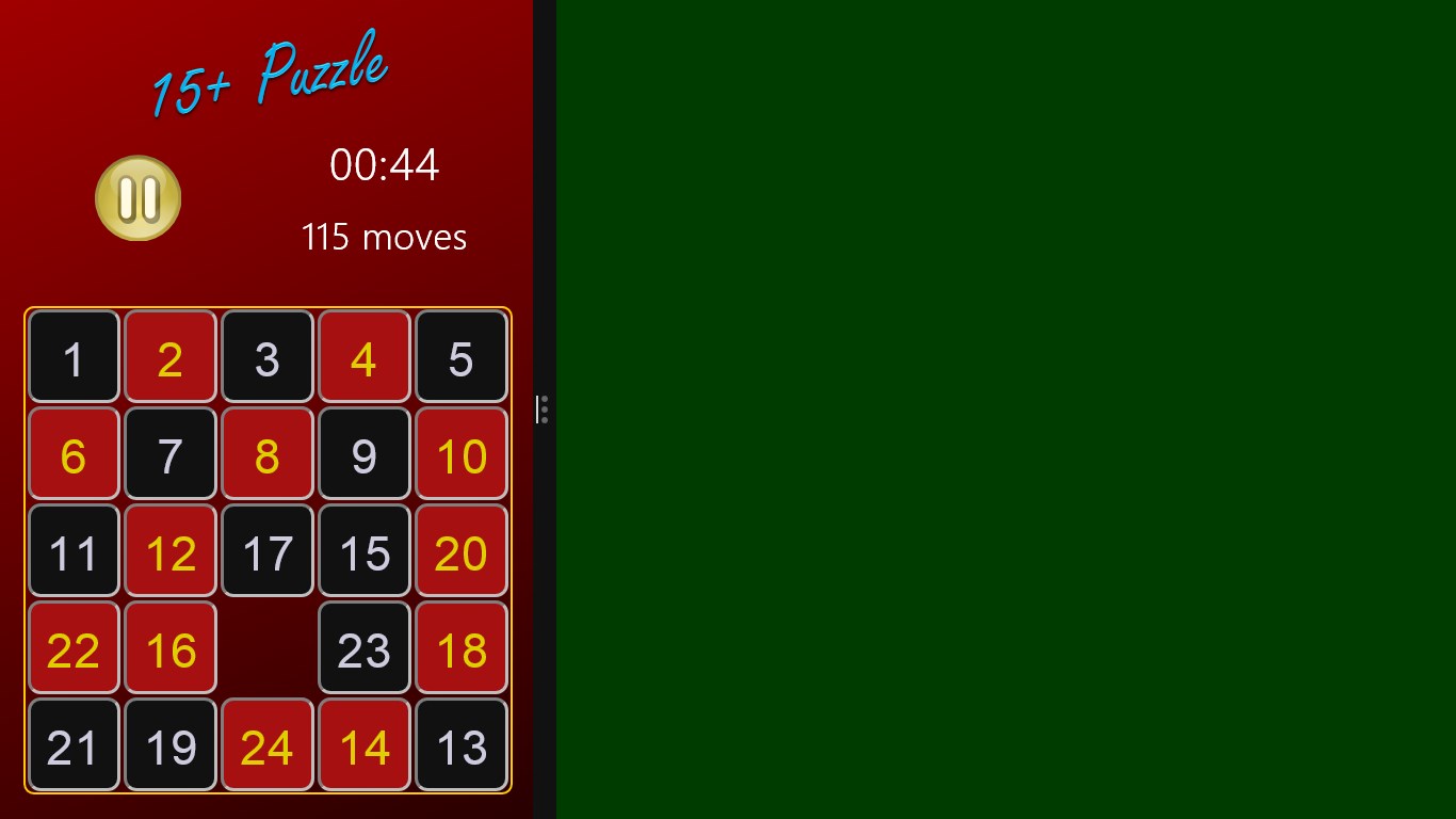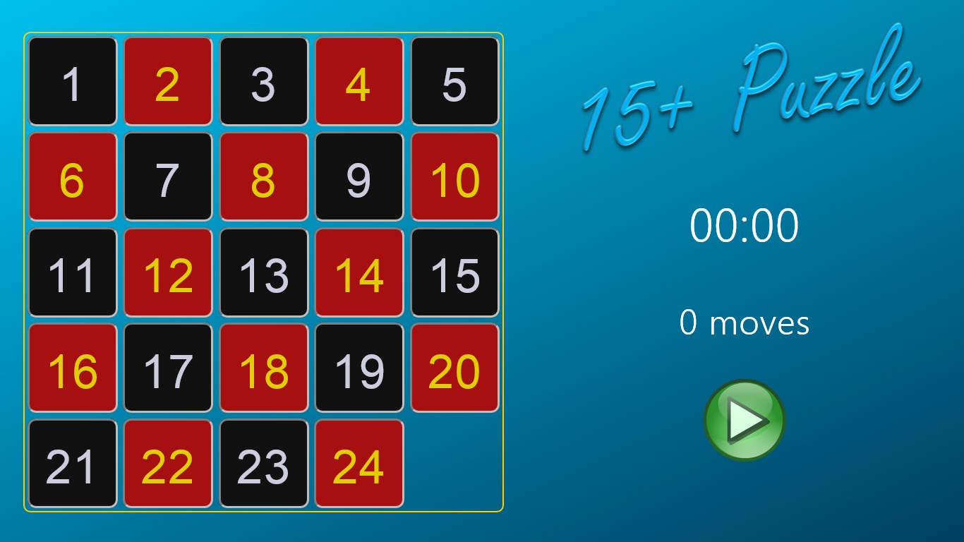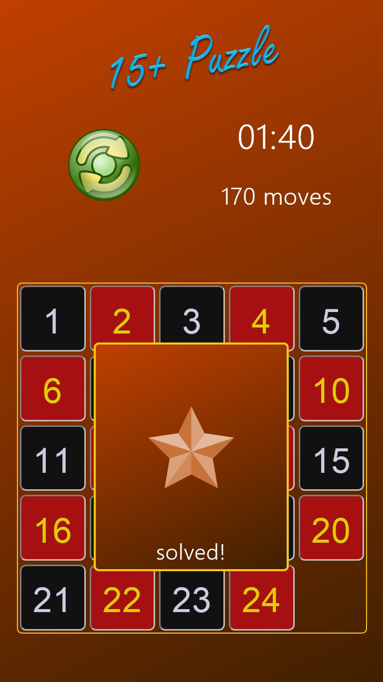 How fast can you arrange the tiles in order? 15+Puzzle lets you test your skill on 3x3, 4x4, and 5x5 grids. With fast, clean graphics, simple sounds, and configurable background colors, 15+Puzzle is ready for hours of enjoyment!