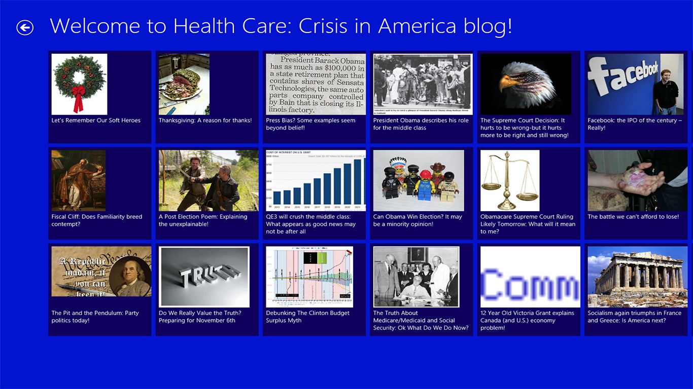 Welcome to the Health Care: Crisis in America Blog. Tom Loker, author of "The History and Evolution of Healthcare in America; The untold backstory of where we've been, where we are and why healthcare needs more reform," covers a wide array of topics related to the problems in our healthcare system including, topics focused on the economy, politics, healthcare and other areas. We are providing this application so you can gain free access to this informative and popular blog.