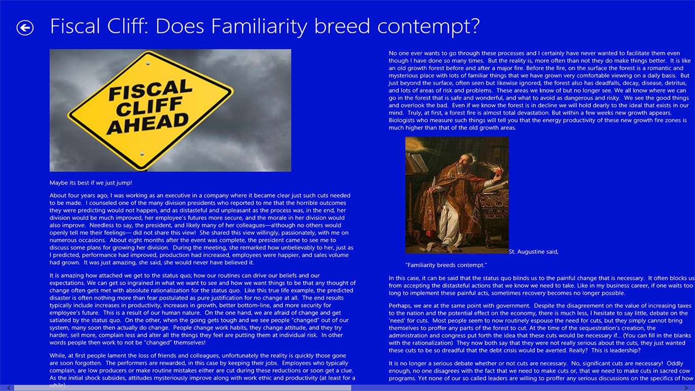 Key articles on Healthcare, its current issues and historical causesInformation on what to expect as the new healthcare rules are implimented and how to prepareHow the issues of healthcare, the economy and politics are intertwinedProvides keen insight as to what likely will and won\'t happen moving forward