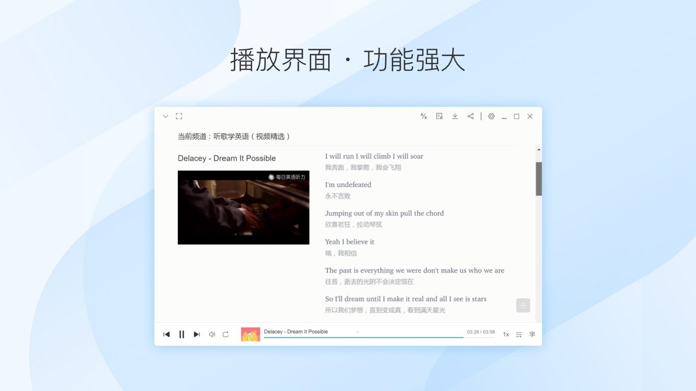 「每日英语听力」为英语学习者打造的听力口语提升应用,软件不仅会每天为您推荐有趣的学习资源;更有单句循环、听写模式等多种训练模式,等你来挑战。专为Windows平台打造,从现在开始,每天十分钟,轻松学英语。