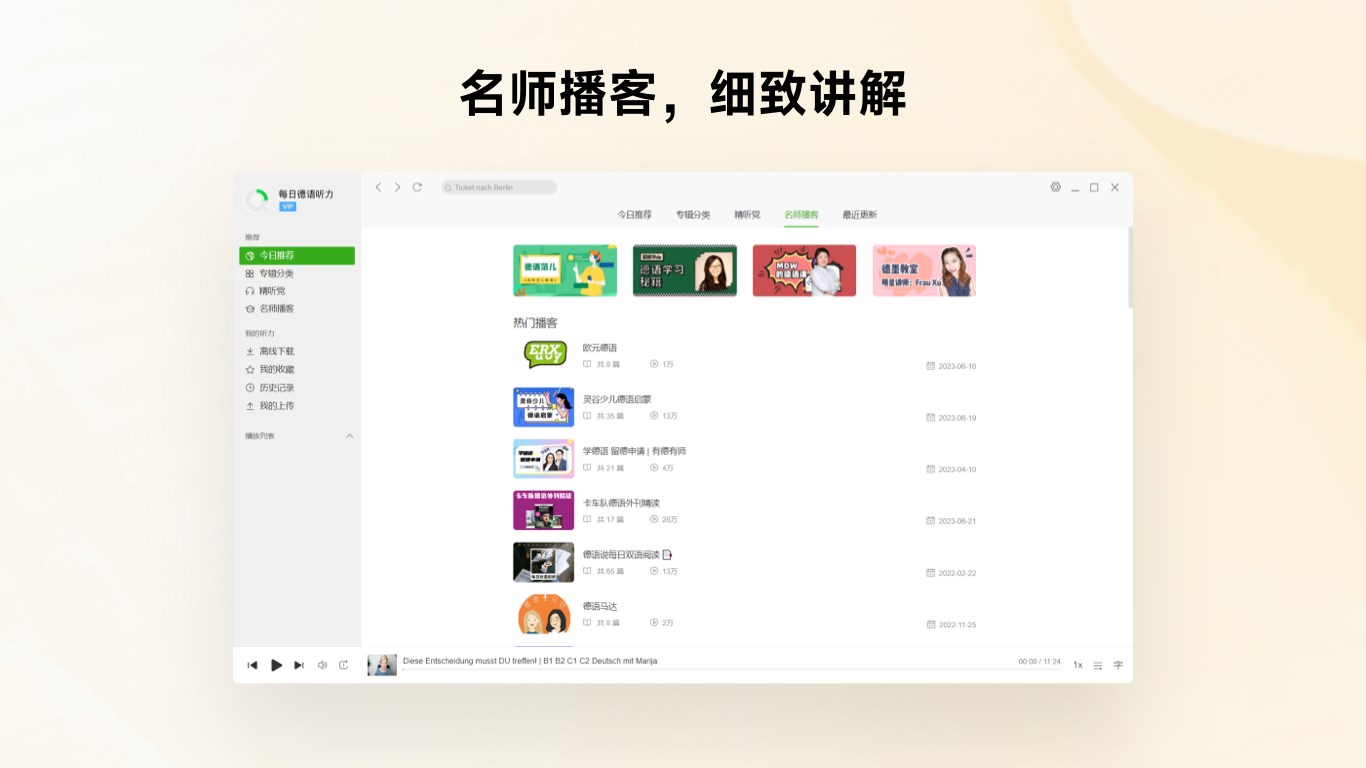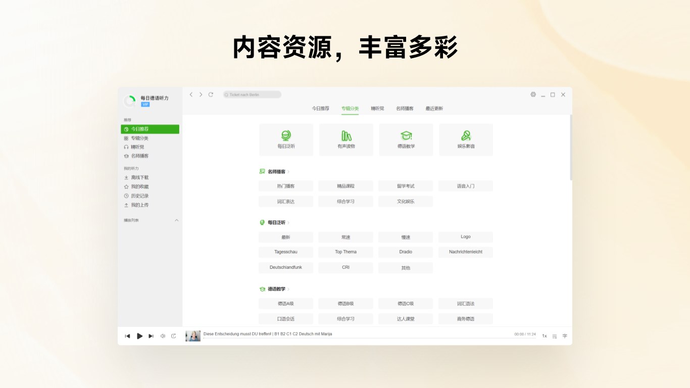 - 全新 Podcast栏目,收录热门德语播客,跟随本土人士聆听地道内容