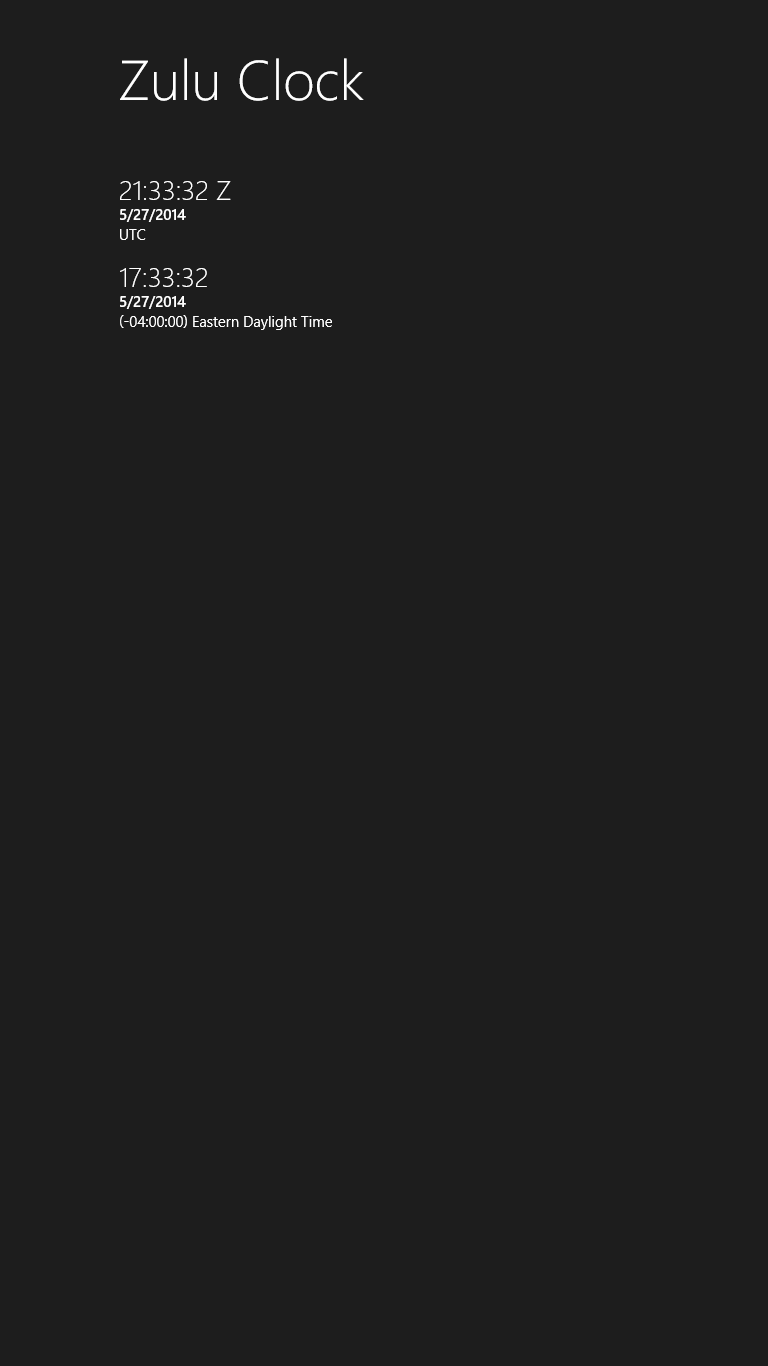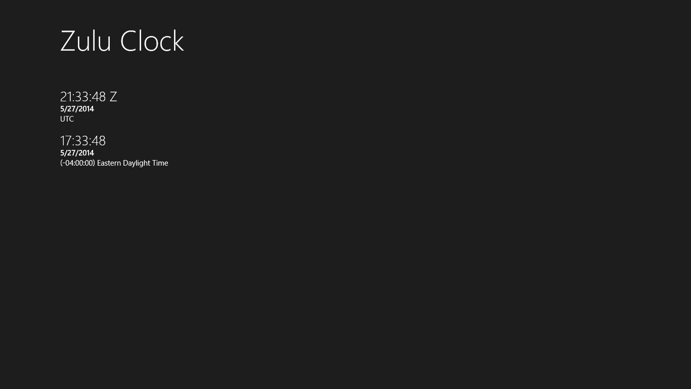 Zulu Clock is an application for the general aviator and traveler that displays the current Zulu Date-Time along with your local date-time.