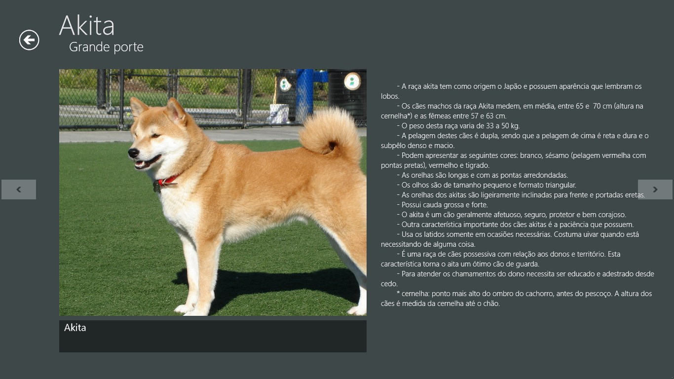 Este aplicativo fornece informações sobre algumas características de algumas raças de cachorros.