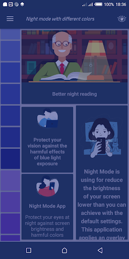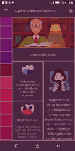 Night Mode with Color Choices está en la parte superior de la lista de Herramientas aplicaciones de categoría en Google Playstore. Tiene muy buenos puntos de calificación y críticas. En la actualidad, Night Mode with Color Choices para ventanas ha superado 100 Aplicación instalaciones and 0 estrella puntos de calificación agregados promedio del usuario.