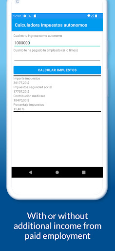 Calculadora Impuestos Autonomo está en la parte superior de la lista de Productividad aplicaciones de categoría en Google Playstore. Tiene muy buenos puntos de calificación y críticas. En la actualidad, Calculadora Impuestos Autonomo para ventanas ha superado 5,000 Aplicación instalaciones and 0 estrella puntos de calificación agregados promedio del usuario.